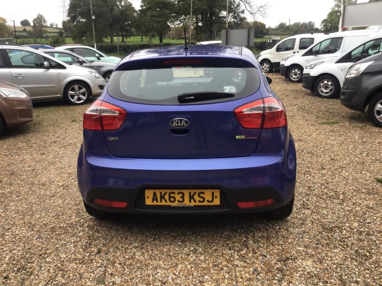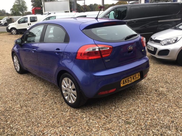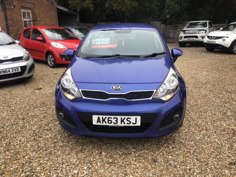 2013/63 KIA RIO 2 1.4 ECODYNAMICS METALLIC BLUE WITH 16INCH MULTI-SPOKE ALLOY WHEELS WITH NEARLY NEW BRIDGESTONE TYRES AND FULL SIZE SPARE ALLOY WHEEL AND TYRE DAYTIME LIGHTS FRONT FOG LAMPS REAR PARKING SENSORS REMOTE CENTRAL LOCKING WITH TWO KEYS GREY CLOTH INTERIOR HEIGHT ADJUSTABLE DRIVERS SEAT SIX SPEED AIR CONDITIONING RADIO CD BLUETOOTH USB AUX ELECTRIC WINDOWS AND MIRRORS ONLY ONE LADY OWNER FROM NEW AND JUST 54091 MILES WITH 10-KIA MAIN DEALER SERVICES AND LAST SERVICE AT LOCAL GARAGE AT 54057 MILES MOT 23-10-2026 £165 A YEAR TAX SIX MONTHS WARRANTY INCLUDED IN SCREEN PRICE £4995 WE EXCEPT BANK TRANSFER OR PAPER MONEY KINGSCLERE SERVICE STATION A339 NEWBURY ROAD KINGSCLERE RG20 4TA WE HAVE BEEN SELLING VEHICLES FROM THIS GARAGE FOR OVER 26-YEARS