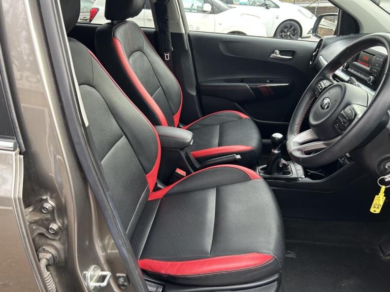 44825 miles. This 2017 Kia Picanto GT-Line boasts a full dealership service history, ensuring its excellent provenance. This one owner vehicle has been meticulously maintained, with its last service completed on 2 October 2025 at 43,957 miles. It features a 1.25 litre petrol engine and meets Euro 6 emissions standards. For your peace of mind, a 12 month MOT will be provided upon purchase, and a clear vehicle history check confirms its sound condition. The GT-Line trim also includes air conditioning for your comfort.The Kia Picanto GT-Line offers several advantages over similar vehicles. Its impressive fuel economy of 61 miles per gallon means fewer trips to the petrol station. Furthermore, its low insurance group rating contributes to lower running costs, making it an economical choice. The low CO2 emissions also highlight its efficiency and environmental consideration. 12v Socket, Air Conditioning, Bluetooth Preparation (Phone), Cupholders, Front Electric Windows, Fuel Computer, Height Adjustable Drivers Seat, Privacy Glass, Split Rear Seats, Steering Column - Adjustable, USB and AUX, Leather Steering Wheel, Power Assisted Steering (PAS), Anti Lock Brakes, Auto On Headlights, Curtain Airbags, Driver Airbag, Electronic Stability Programme (ESP), Front Fog Lights, ISOFIX, Alarm, Remote Central Locking, Faux Leather Upholstery, Solid Paint, Alloy Wheels.