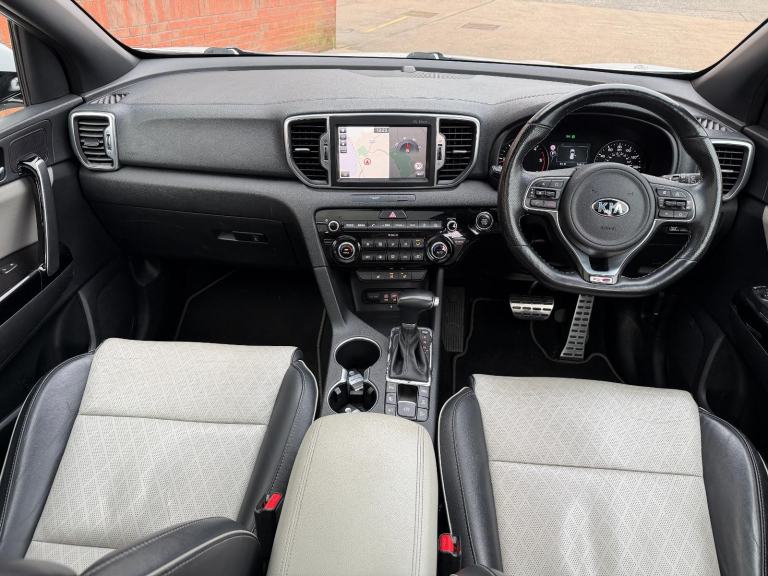 2017 KIA SPORTAGE 2.0 CRDI GT-LINE S 180 BHP *** 4X4 / AWD *** 6 SPEED AUTOMATIC & FINISHED IN GLEAMING GLACIER WHITE WITH A VERY CONTRASTING FULL TWO-TONE BLACK / WHITE LEATHER , HEATED LEATHER SEATING *****