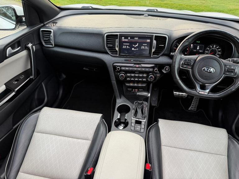 2017 KIA SPORTAGE 2.0 CRDI GT-LINE S 180 BHP *** 4X4 / AWD *** 6 SPEED AUTOMATIC & FINISHED IN GLEAMING GLACIER WHITE WITH A VERY CONTRASTING FULL TWO-TONE BLACK / WHITE LEATHER , HEATED LEATHER SEATING *****