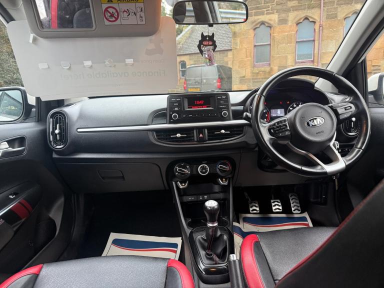 Just arrived in our stock is this 2018(18) Kia Picanto 1.0 GT-Line Euro 6 5dr with 63,000 miles with history cracking spec motor with full red black leather 2 keys 12 months mot ideal first car viewing highly recommended finance Also available to arrange viewing visit MKS car sales.These are in addition to what this Car typically comes with as standard:Faux Leather - Black with Red InsertsWhen New This Car Came With:Front Cabin LightFront Fog LightsFront Passenger Airbag Cut Off SwitchFront Seatback Pockets - Front PassengerFront Seatbelt Height AdjustersFront Seatbelt Pre-Tensioners and Load LimitersFront and Rear Electric Windows with Drivers Auto Up-Down FunctionGloveboxHeadlight Levelling SystemHeated Rear WindowHigh Gloss Centre Fascia TrimHigh Mounted Brake LightHill-Start Assist Control - HACISOFIX Child Seat Top Tethers and Anchor FixingsImpact Sensing Auto Door UnlockingLED Daytime Running LightsLeather Trimmed Steering Wheel with Leather Trimmed GearshiftLocking Wheel NutsLuggage Area LightLuggage Area Parcel ShelfMotor Driven Power Steering - MDPSPrivacy Glass - Rear Windows and TailgateRear Fog LightRear Lights - LEDRear Wiper-WasherRemote Central Locking with Folding KeySatin Chrome Interior Door HandlesSeatbelt Reminder WarningSide Impact Protection SystemSliding and Reclining Front SeatsSpeed Sensing Auto Door LockingSpeed Variable Front WipersSports Front and Rear Bumpers with Twin ExhaustStainless Steel PedalsSteering Wheel Mounted Audio ControlsTachometerTilt Steering Wheel AdjustmentTinted GlassTrip ComputerTwin Curtain AirbagsTwin Front AirbagsTwin Side Airbags - FrontTyre Pressure Monitoring System - TPMSTyre Repair KitUSB and AUX Ports for Connection of a Media DeviceVisible Vehicle Identification Number - VINWelcome and Follow-Me-Home Light Functionality1 x Coat Hooks - Rear12V Power Socket - Front16in Alloy Wheels2.6in Supervision Monochrome Cluster Display3 x Passenger Assist Grips3.8in Monochrome Audio Display with RDS6-Speaker System60-40 Split Folding 2nd Row SeatsABS with Electronic Brakeforce Distribution - EBD and Brake Assist System - BASAdvanced Driving Assistance Pack - ADAPAir ConditioningAll-Round 3-Point SeatbeltsAll-Round Height Adjustable HeadrestsAnti-Theft Alarm SystemAutomatic Headlight ControlAutonomous Emergency Braking - AEBBi-Function Projection HeadlightsBlack Radiator Grille with Chrome SurroundBluetooth with Music StreamingBody Coloured BumpersBody Coloured Exterior Mirrors and Exterior HandlesBody Coloured Side Sill MouldingsCentre Console CupholdersCentre Console with Storage Box and Sliding ArmrestChild Safety Rear Door LocksChrome Side Window TrimDriver and Front Passenger Sunvisors with Vanity MirrorESC - Electronic Stability ControlElectrically Folding-Adjustable and Heated Door Mirrors with LED Indicator LightsEmergency Stop Signalling - ESSEngine ImmobiliserExternal Temperature Display