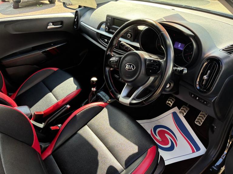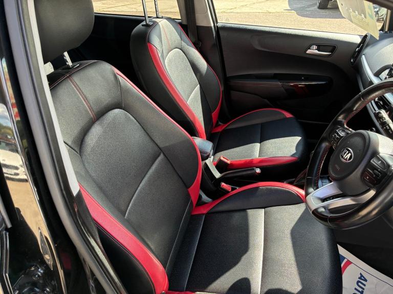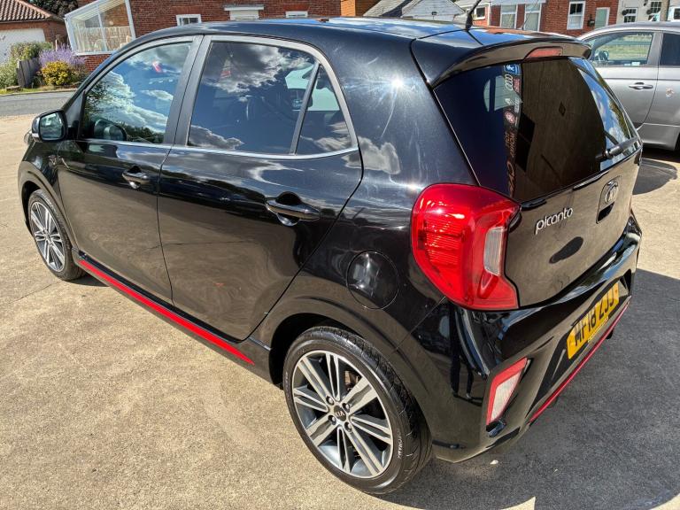 2018 18 KIA PICANTO 1.0 GT LINE 5DR IN BLACK WITH RED AND BLACK SPORTS INTERIOR, DIAMOND CUT ALLOY WHEELS, AIRCON, CRUISE CONTROL, BLUETOOTH, REMOTE LOCKING, ELECTRIC WINDOWS AND POWERFOLD MIRRORS, TRIP COMPUTER