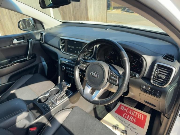 Fusion White,Leather - Black,Fusion White (Premium),Premium Paint,1591 cc 1.6 litres in-line 4 engine with 77.0 mm bore 85.4 mm stroke 10.0 compression ratio variable valve timing/camshaft and four valves per cylinder 10.0,12v power outlet located in boot/cargo section front section and rear section boot/cargo,12v power outlet located in boot/cargo section front section and rear section front,12v power outlet located in boot/cargo section front section and rear section rear,16.7 degree maximum slope approach angle and 23.9 degree maximum slope departure angle,1 autonomous drive active lane control and traffic-sign recognition,360 view parking camera,4.2 inch multi-function display screen(s) Instrument panel 1 and 10.7 8.0 inch touch sensitive multi-function display screen(s) Dashboard 1 and 20.3 Dashboard centre 1,4.2 inch multi-function display screen(s) Instrument panel 1 and 10.7 8.0 inch touch sensitive multi-function display screen(s) Dashboard 1 and 20.3 instrument cluster 1,4 trim level - JATO classification: M2,62 litre main fuel tank main,ABS,Analogue & TFT dashboard,Anticorrosion warranty: 144 months 100000 miles 160934 km,Anti-theft protection with interior monitoring,Apps control,Asymmetrically folding rear seats: bench type with space for three people; heated with zero electric adjustments front,Audio system with touch screen ; radio receives AM/FM digital and RDS colour screen,Automatic air conditioning with two climate control zones,Automatic smart card/key includes keyless entry and keyless start,Bluetooth includes phone connection and music streaming,Body colour power door mirrors ; heated with integrated indicator lights driver,Body colour power door mirrors ; heated with integrated indicator lights passenger,Brake assist system,Built-in Apps,Central door locking: Operated by card key Includes dead bolt,Centre armrest between front seats,Centre armrest between rear seats,Centre differential lock centre,Charges: VAT [20%] = 4694.17 VED (Standard Rate) = 140.00 FRF = 55.00 VED (First Year 171 - 190 g/km) = 830.00 Additional Charges (GB) = 0.00,Chrome/bright trim around side windows on side of body and on bumpers,Chrome/silver roof rails,Collision warning system which activates brake lights and brakes at low speed and includes brake assist driver monitor and pedestrian avoidance system,Computer includes average speed average fuel consumption instantaneous fuel consumption and range for remaining fuel,Connections for USB (front) auxiliary audio devices (front) and USB (rear),Cornering brake control,Cruise control,Cup holders for front seats and rear seats front seats,Cup holders for front seats and rear seats rear seats,Data completeness: up to date pricing data up to date data for key leasing items specifications data from official documentation up to date colour & trim data up to date option pricing data up to date option content data and up to date incentives data,Date introduced: Model introduced 01 Aug 2018 and Version introduced 01 Aug 2018,Day time running lights,Driver seat: individual type heated electrically adjustable five electrical adjustments passenger seat: individual type heated electrically adjustable four electrical adjustments driver,Driver seat: individual type heated electrically adjustable five electrical adjustments passenger seat: individual type heated electrically adjustable four electrical adjustments passenger,Dual clutch manual sequentialgearbox,Dynamic steering,Eight JBL speakers including subwoofer,Electrically foldable mirrors,Electrical system 12,Electronic brake distribution,Electronic hand brake,Electronic traction control,Emissions: EU6.2 (C and D-Temp) compliant 175 g/km CO2 (max) 0.67700 g/km carbon monoxide 0.042 g/km HC 0.011 g/km NOx and 0.000 g/km particulate matter,Energy recuperation engine,Engine start/stop,Euro NCAP crash test results: Overall: 5.00 Adult occupant: 90.00 Child occupant: 83.00 Pedestrian: 66.00 Safety assist: 71.00 Version tested: Kia Sportag.Metallic Fusion White, Privacy Glass, Contrasting Full Black Leather Interior With Heated Seats & Heated Steering Wheel, Panoramic Sunroof, Touch Screen Infotainment System, Satellite Navigation, Reversing & 360 Camera With Front And Rear Parking Sensors, Blind Spot Assist, Bluetooth With Music Streaming, DAB Radio, USB Input, JBL Premium Sound System, Smart Phone Integrated Apple Carplay/Android Auto, Air Conditioning, Climate Control, Cruise Control, Drive Mode Select, Electric Windows/Mirrors/Folding Mirrors/Drivers Seat/Twin Seat, Multi-Function Steering Wheel, Power Steering, ABS Brakes, Multi Airbags, 5 Headrests, Three Point Rear Seatbelts, ISOFIX Child Seat Preparation, Push Button To Start, Arm Rest, Lumbar Support, Roof Side Rails, Shark Finn Antenna, LED Headlights, 19in Alloy Wheels, Remote Alarm, This Car Has Covered Only 75000 Miles & Benefits From A Full Service History, 6 Services, This Car Can Achieve Over 42 MPG & Costs Just £195 A Year Road Tax, NO ULEZ CHARGE.Every