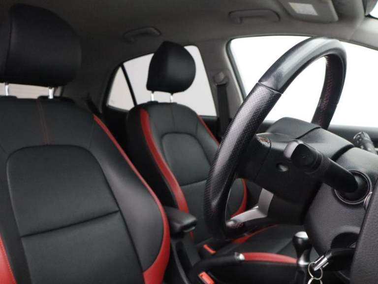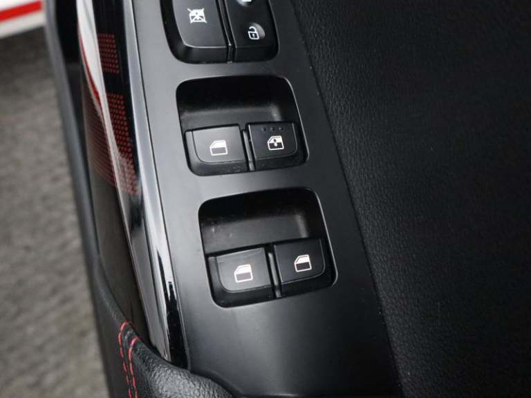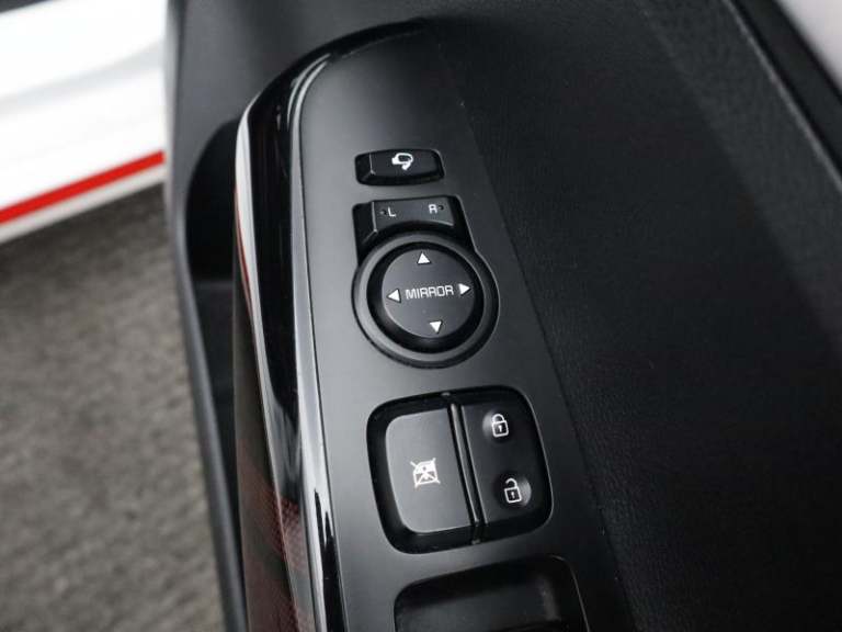 Paint - Special, Special - Clear white, Trim - Leather, Faux leather - Black with red insert, Exterior Features, Front and rear electric windows with drivers's auto up/down function, Heated rear window, Privacy glass - Rear windows and tailgate, Rear wash/wipe, Tinted glass, Variable front intermittent wipers, Black radiator grille with chrome surround, Body colour bumpers, Body colour side sill mouldings, Chrome side window trim, Sports front and rear bumpers with twin exhaust, Visible VIN plate, Automatic headlights, Bi-function projection headlights, Front fog lights, Headlamp levelling, High mount brake light, LED daytime running lights, LED rear lights, Rear fog lights, Welcome and follow-me home light functionality, Safety, ABS/EBD, ESC + BAS + VSM + HAC, Traction control, Emergency stop signalling system, Motor driven power steering, Rear parking sensors, Reversing camera system with dynamic guidelines (Integrated into centre fascia screen), Body colour mirrors and door handles, Day/night rear view mirror, Electric adjustable/heated/folding door mirrors with LED indicators lights, 3x3 point rear seatbelts, Automatic unlocking of doors in case of impact, Dual front airbags, Front seatbelt height adjusters, Front seatbelt pretensioners + load limiters, Passenger airbag deactivate switch, Rear child proof door locks, Seatbelt warning, Side impact protection, Twin curtain airbags, Twin front side airbags, Tyre pressure monitoring system, Audio / Communications, Apple car play/Android