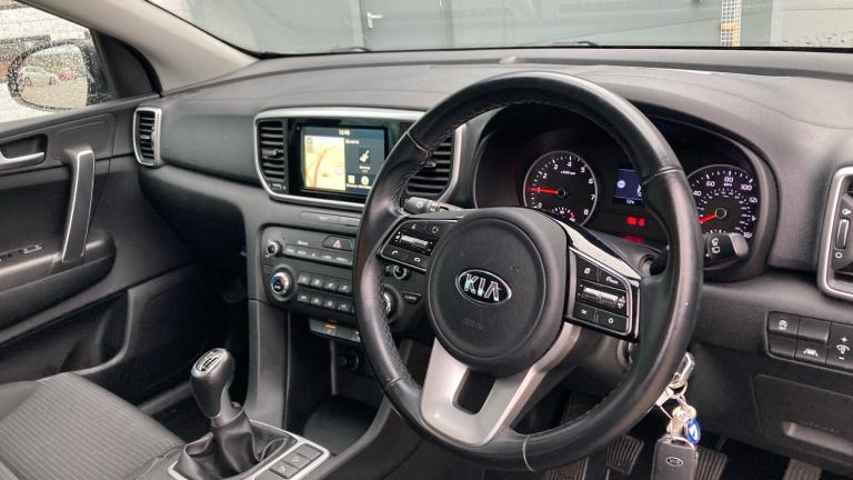 The Kia Sportage 1.6 GDi ISG 2 is a well-balanced compact SUV that offers comfort, practicality, and modern styling without the premium price tag. Its 1.6-litre petrol engine provides smooth and dependable everyday performance, ideal for commuting, school runs, and weekend trips. The ISG stop-start system helps improve fuel efficiency in town driving, making it a cost-effective choice for anyone who spends time in traffic.Inside, the Sportage 2 trim feels inviting and well equipped. You get a clean, modern cabin with supportive seating, a user-friendly infotainment system with smartphone connectivity, and thoughtful touches like rear-seat ventilation and full electric windows. The generous boot space adds real flexibility, whether you're loading up for a family day out or handling weekly shopping with ease.On the road, it delivers a comfortable, refined drive with reassuring stability and a confident stance. The 17-inch alloys and bold exterior design give it strong kerb appeal, while the elevated driving position provides excellent visibility.Overall, this version of the Sportage is a smart choice for anyone looking for a reliable, stylish, and practical SUV that’s easy to live with and economical to run..Rain sensing front wipers, Anti-lock braking system with electronic brakeforce distribution, Apple car play with voice control, Speed limit information, 3.5"" Supervision Cluster Display, Body colour door mirrors, Metallic finish centre fascia, 6 speaker audio System, Shark fin antenna, Welcome and follow-me home light functionality, Dual Zone automatic air conditioning, Leather steering wheel, Glovebox illumination, Rear door child safety locks, Driver's seat manual height adjust, Visible vehicle identification number, Driver and front passenger side sunvisors with illuminated vanity mirrors, 17"" alloy wheels, Tyre mobility kit