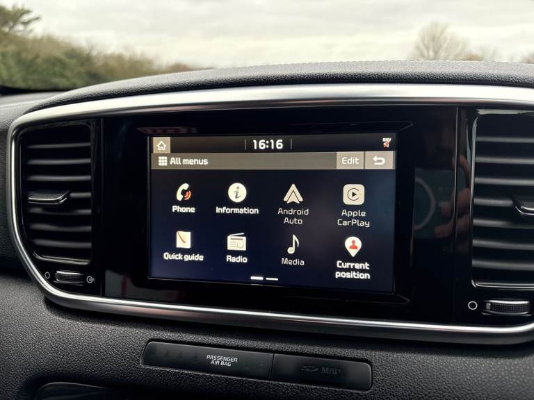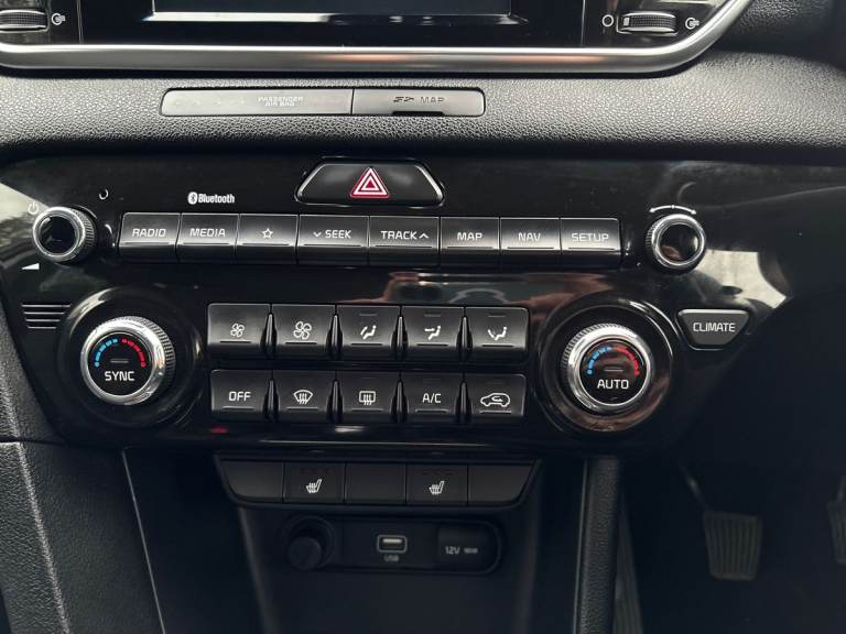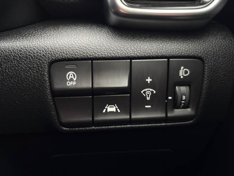 ..3.5'' supervision cluster display, 7'' touchscreen satellite navigation with European mapping and traffic messaging channel, Android auto with voice control, Apple car play with voice control, Bluetooth connectivity with voice control, Cruise control + speed limiter, Digital clock, Driver attention warning, Emergency stop signalling system, Kia connected services featuring TomTom live, Lane keep assist, Rear parking sensor, Reversing camera, Speed limit information, Speed sensitive power steering, Trip computer, Windscreen washer level indicator, Intelligent Stop and Go, 6 speaker audio system, Bluetooth audio streaming, DAB Radio with MP3, Rear USB port, Steering wheel mounted audio controls, USB/iPod/auxiliary input connections, All round electric windows with drivers auto up/down function, Auto dimming rear view mirror, Automatic defog system, Automatic headlights, Automatic lighting control, Bi-Function halogen headlights, Black side sill and wheel arch body mouldings, Body colour door handles with chrome inserts, Body colour door mirrors, Chrome front bumper insert, Chrome grille surround, Chrome window surround, Cornering light, Electrically adjustable/heated/folding door mirrors with LED indicators, Headlamp levelling, High beam assist, High gloss black diamond mesh radiator grille, LED daytime running lights, Projection front fog lights, Rain sensing front wipers, Rear spoiler, Rear wiper, Roof rails, Shark fin antenna, Speed sensitive front wipers, Tinted glass, Trailer stability assist, Welcome and follow-me home light functionality, Wide view drivers door mirror, 12V power in front and rear centre console, 3 x passenger assist grips, 60/40 split folding rear seat, Air filter, All-round height adjustable headrests, Centre cabin light, Centre console storage box, Door armrest in leather, Driver and front passenger side sunvisors with illuminated vanity mirrors, Driver's seat manual height adjust, Drivers seat power lumbar support, Dual zone automatic air conditioning, Front and rear door storage, Front cabin LED map light with sunglasses case, Front door courtesy reflectors, Front seat and rear pockets, Front/rear centre armrests, Gear shift indicator, Glovebox illumination, Heated front and outer rear seats, Heated front seats, Ignition key lock illumination, Interior door lock/unlock function, ISOFIX Child seat top tethers and anchor fixings, Leather steering wheel, Leather trimmed gearshift, Light grey headlining, Luggage area light, Luggage
