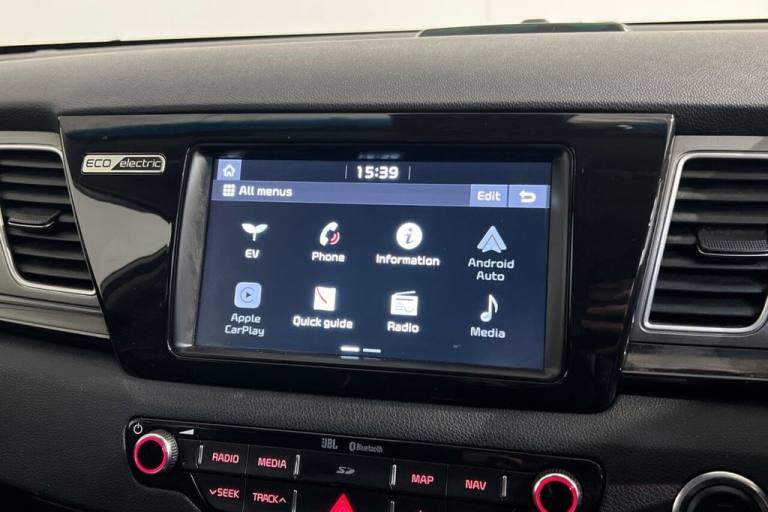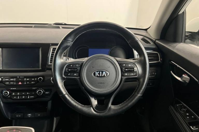 This 2020 Kia Niro First Edition boasts exceptionally low mileage for its age, having covered just 47,000 miles, and comes with an MOT valid until July 2026. As an all electric model, it offers a substantial battery total capacity of 68 kWh, providing a maximum range of 282 miles when new. This First Edition variant also includes convenient features such as a wireless phone charger, heated front seats for added comfort, and a reversing camera system integrated into the satellite navigation screen. Parking is made easier with front parking sensors, and the smart entry system allows for keyless entry and engine start stop. The impressive 282 mile range from new sets this Kia Niro apart, offering excellent usability for both daily commutes and longer journeys. Charging is also efficient, with a full charge at home taking approximately 9 hours and 35 minutes using a 7kW charger, and a rapid charge from empty to 80% achievable in just 54 minutes at a public charging station. These charging capabilities, combined with its generous range and comprehensive feature set, make this electric Kia Niro First Edition a compelling choice for those seeking an efficient and well equipped vehicle. Lifetime warranty available on this car, plus a £1,000 finance contribution when you part exchange. Voted UK Car Supermarket of the Year two years running, we offer 0% finance, part exchange, and lifetime warranties across our entire range. Every car is thoroughly inspected before sale and comes with a full history check, so you can buy with complete peace of mind. Buy with confidence on our best finance rates. Proud winners of the CarGurus Top-Rated Dealer 2022 and the MotoNovo Extra Mile Award. .17in Alloy Wheels, 3 x Passenger Assist Grips, 60-40 Split Folding 2nd Row Seats, 7in Supervision Cluster with LCD TFT Colour Display, 8-Speaker JBL - Premium Sound System with Subwoofer - External Amp and Front Centre Speaker, 8-Way Drivers Power Adjustable Seat - Sliding-Reclining-Height Adjustment, 8in Touchscreen Satellite Navigation with European Mapping and Traffic Messaging Channel - TMC, ABS - Anti Lock Braking System, Alarm System and Engine Immobiliser, All-Round 3-Point Seatbelts, All-Round Electric Windows with Driver and Front Passenger Auto Up-Down Function, All-Round Height Adjustable Headrests, Apple CarPlay and Android Auto, Auto Dimming Rear-View Mirror, Automatic Headlight Control, Automatic Windscreen De-Fog, Black Side Sill and Wheel Arch Body Mouldings, Bluetooth with Music Streaming, Body Coloured - High Gloss Door Mirrors, Centre Console Storage Box, Chrome Beltline Mouldings, Chrome Coated Exterior Door Handles, Cupholders in Rear Armrest, DAB Radio with MP3 Compatibility, Digital Clock, Door Deadlocks, Driver and Passenger Sunvisors with Vanity Mirror and Illumination, Drivers Seat 2-Way Power Lumbar Support, Drivers Seat Power Lumbar Support, Drivers Wide View Door Mirror, Electric Parking Brake with Auto Hold Function, Electrically Folding-Adjustable and Heated Door Mirrors with LED Indicator Lights, Emergency Stop Signalling - ESS, Engine Start-Stop Button with Smart Entry System, ESC - Electronic Stability Control, Forward Collision-Avoidance Assist, Front and Rear Centre Armrests, Front and Rear Door Storage, Front Fog Lights, Front Parking Sensors, Front Passenger Airbag Cut Off Switch, Front Seatback Pockets - Driver, Front Seatback Pockets - Front Passenger, Front Seatbelt Height Adjusters, Front USB and AUX Port, Heated Front Seats, Heated Steering Wheel, High Gloss Black Centre Fascia Trim, High Gloss Black Door Insert Trim, High Gloss Black Lower Console Trim, High Gloss Black Steering Wheel Trim, Hill-Start Assist Control - HAC, Impact Sensing Auto Door Unlocking, Interior Door Lock-Unlock Function, ISOFIX Child Seat Top Tethers and Anchor Fixings, Kia Connected Services Featuring TomTom - Traffic - Speed Cameras - Local Search and Weather Updates, Knee Airbag - Driver, Lane Follow Assist - LFA, Lane Keep Assist System - LKAS, Lane Keeping Assist System - LKAS with Driver Attention Warning and High Beam Assist, Leather - Black, Leather Trimmed Door Armrests, Leather Trimmed Gear Shift, Leather Trimmed Steering Wheel, L
