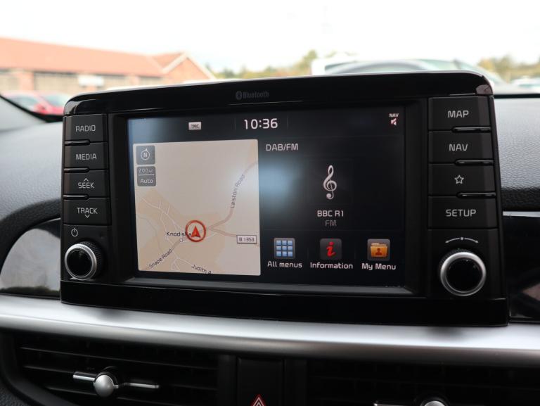 Very low mileage Picanto in superb condition both inside and out. Great spec and economical 1.2 petrol engine. Fr+Rr parking sensors, parking camera, sat nav, air con, cruise control, bluetooth plus much more. Features Include: , 1 x coat hooks - rear, 3 x passenger assist grips, 60-40 split folding 2nd row seats, all-round height adjustable headrests, automatic air conditioning, centre console cupholders, centre console with storage box and sliding armrest, driver and front passenger sunvisors with vanity mirror, drivers seat height adjustment, front cabin light, front passenger seatback pocket, glovebox, high gloss lower centre fascia trim - door armrest and air vents, leather trimmed steering wheel with leather trimmed gearshift, luggage area light, luggage area parcel shelf, silver paint finished interior door handles, sliding and reclining front seats, speed variable front wipers, steering wheel mounted audio controls, tilt steering wheel adjustment, 12v power socket - front, 6-speaker system, 7in touchscreen satellite navigation with rds and dab, android auto with voice control, apple carplay with voice control, bluetooth with music streaming, kia connected services featuring tomtom - traffic - speed cameras - local search and weather updates, usb and aux ports for connection of a media device, 15in alloy wheels, black radiator grille with chrome surround, body coloured bumpers, body coloured mirrors and chrome exterior handles, electrically folding-adjustable and heated door mirrors with led indicator lights, front and rear electric windows with drivers auto up-down function, heated rear window, locking wheel nuts, rear fog light, tmk - tyre mobility kit, tinted glass, abs with electronic brakeforce distribution - ebd and brake assist system - bas, advanced driving assistance pack - adap, all-round 3-point seatbelts, anti-theft alarm system, child safety rear door locks, esc - electronic stability control, emergency stop signalling - ess, engine immobiliser, front passenger airbag cut off switch, front seatbelt height adjusters, front seatbelt pre-tensioners and load limiters, hill-start assist control - hac, isofix child seat top tethers and anchor fixings, impact sensing auto door unlocking, rear wiper-washer, remote central locking with folding key, seatbelt reminder warning, side impact protection system, twin curtain airbags, twin front airbags, twin side airbags - front, visible vehicle identification number - vin, automatic headlight