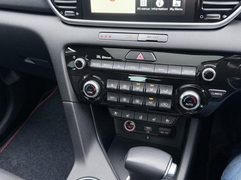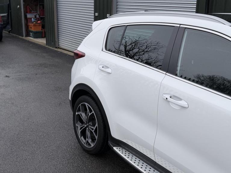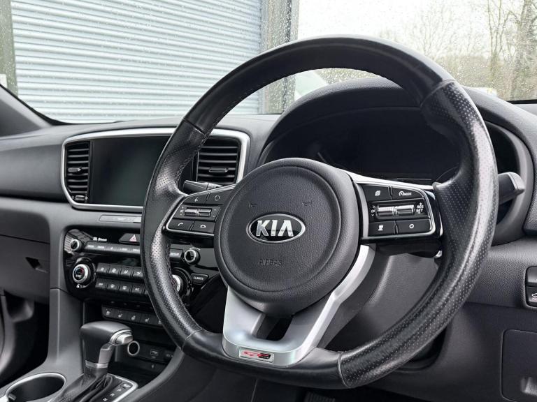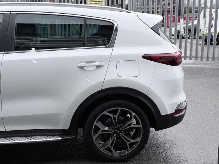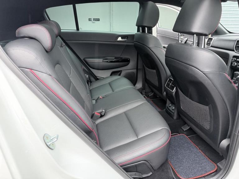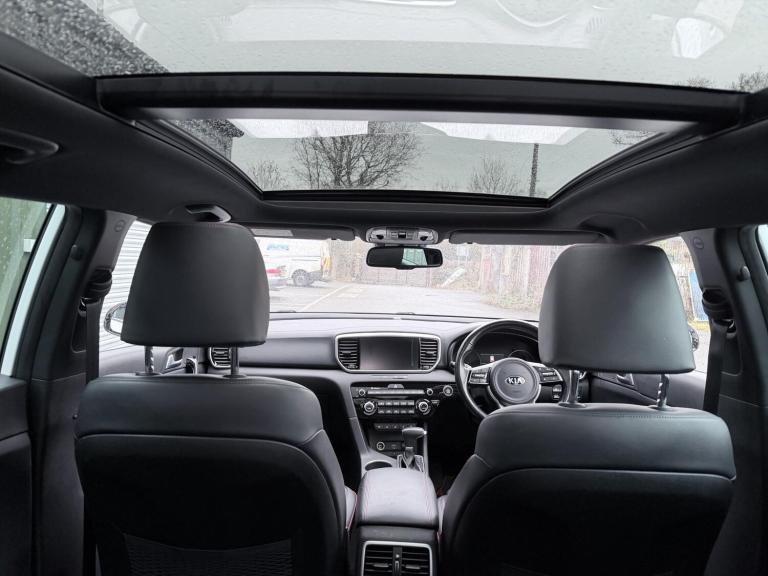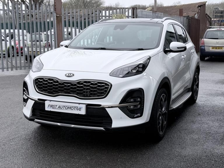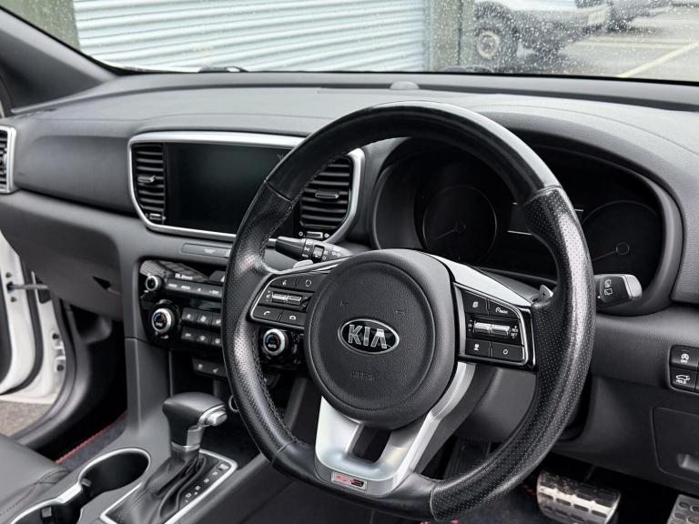 FREE SERVICE PLAN / Next service included! This is a 2020 Kia Sportage 1.6 CRDi mild hybrid GT Line S finished in Fusion White, registered September 2020 and showing 42,300 miles. It is the top specification model with the diesel hybrid engine paired to the automatic DCT gearbox, meeting Euro 6 emissions. The car has had 5 keepers in total, with the most recent keeper change recorded on 30 July 2025. (3 of the owners being the same family). Being the GT Line S, it comes very well equipped and feels properly premium inside and out. Exterior highlights include the 19 inch GT Line alloy wheels, panoramic glass sunroof with one touch electric operation, privacy glass, roof rails, rear spoiler, dual exhaust finish, LED headlights with high beam assist, LED daytime running lights, LED rear lights, front and rear parking sensors, reversing camera and the 360 degree surround view monitor which is excellent for town driving and tight parking. Inside, the cabin is finished in black leather with red piping and stitching, paired with a black headlining and gloss black trim. Both front seats are electrically adjustable with lumbar support, heating and ventilation, and the steering wheel is heated and trimmed in GT Line sports leather with paddle shift. There is dual zone automatic climate control, a wireless phone charger, keyless entry with push button start, smart power tailgate, auto dimming rear view mirror and plenty of storage throughout including rear armrest cupholders and a generous boot with load cover and LED lighting. Technology is a strong point on this car. It features the large touchscreen navigation system with TomTom live services, Apple CarPlay and Android Auto, Bluetooth audio streaming, DAB radio, USB ports front and rear, rear USB charging, and the premium JBL sound system with subwoofer. Kia connected services and trip computer functions are also included. On the safety and driver assistance side, it is fully loaded. Equipment includes smart cruise control with stop and go, lane keep assist, blind spot collision warning, forward collision avoidance with pedestrian detection, driver attention warning, speed limit information, tyre pressure monitoring, hill start assist, electronic parking brake, trailer stability assist, ISOFIX points and a full suite of airbags. The mild hybrid diesel engine delivers a good balance of performance and efficiency, making it a strong all rounder for daily use, motorway...