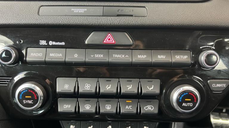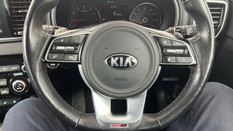 ..360 degree around view monitor, 4.2'' supervision colour cluster display, 8'' touchscreen satellite navigation with European mapping and traffic messaging channel, Android auto with voice control, Apple car play with voice control, Blind spot collision warning, Drive mode selector, Driver attention warning, Emergency stop signalling system, Forward collision avoidance assist, Front parking sensor, Kia connected services featuring TomTom live, Lane keep assist, Rear parking sensor, Reversing camera, Smart cruise control with stop and go functionality, Smart power tailgate, Speed limit information, Speed sensitive power steering, Telematics system with UVO connect services, Trip computer, Windscreen washer level indicator, Wireless Smartphone charger, Intelligent Stop and Go, Bluetooth audio streaming, DAB Radio with MP3, JBL Premium sound system with 8 speakers, external amp, subwoofer and front centre speaker, Rear USB port, Steering wheel mounted audio controls, USB/iPod/auxiliary input connections, All round electric windows with drivers and front passenger auto up/down function, Auto dimming rear view mirror, Automatic lighting control, Automatic window defogger, Black wheel arch body mouldings and side sills with dark chrome insert, Body colour door handles with chrome inserts, Body colour door mirrors, Chrome window surround, Dark chrome front bumper insert, Dark chrome front grille surround, Electric panoramic glass sunroof (Electric one touch with safety function), Electrically adjustable/heated/folding door mirrors with LED indicators, Front wiper de-icer, High beam assist, High gloss black blade mesh radiator grille, LED Bi-Function headlights, LED daytime running lights, LED ice cube front fog lights, LED rear lights, Privacy glass - Rear windows and tailgate, Rain sensing front wipers, Rear spoiler, Rear wiper, Roof rails, Shark fin antenna, Silver painted front and rear skid plates, Tinted glass, Trailer stability assist, Welcome and follow-me home light functionality, Wide view drivers door mirror, 10 way driver/8 way passenger electrically power adjustable seats, 12V power in front and rear centre console, 3 x passenger assist grips, 60/40 split folding rear seat, Air filter, All-round height adjustable headrests, Aluminium door scuff plates, Aluminium pedals, Black headlining, Centre console storage box, Chrome boot sill guard, D-Shaped sports leather steering wheel and perforated inserts with GT-Line logo, Driver and front passenger side