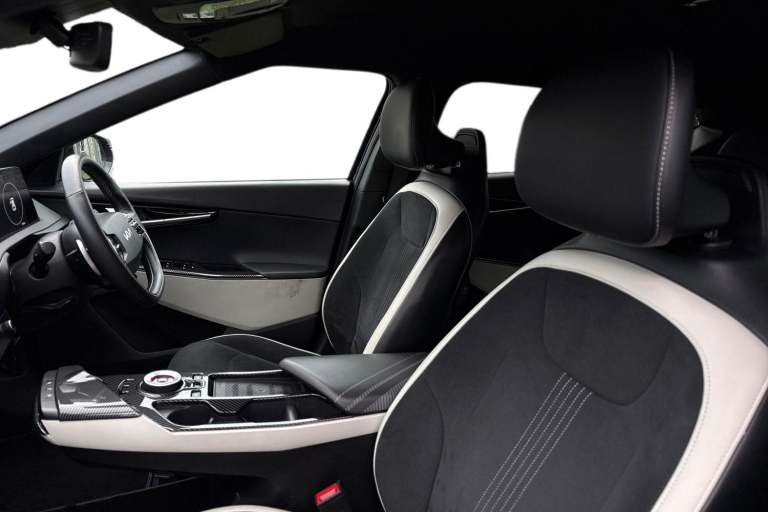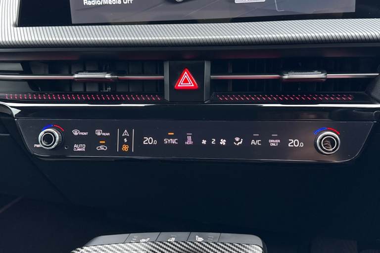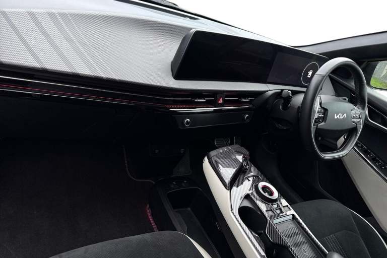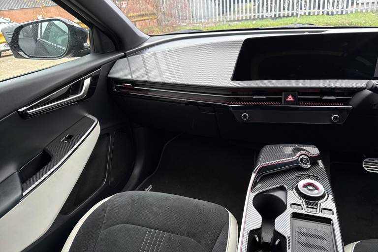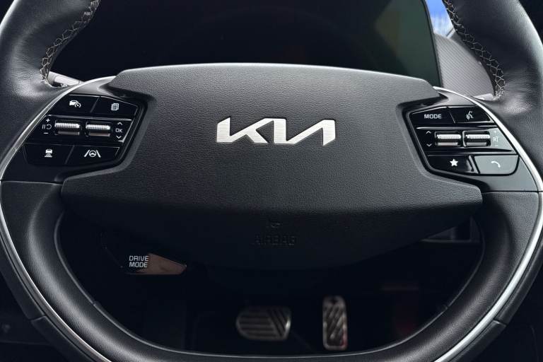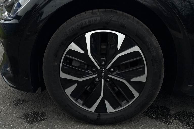 **Please note that this vehicle may be located off-site at our compound please call ahead to book a viewing/test drive** The Kia EV6 77.4kWh GT-line Auto 5dr in Black combines striking design with advanced electric performance and cutting edge technology. Its bold GT-Line exterior styling is enhanced by 19 inch black alloy wheels, high gloss black detailing, privacy glass, sculpted side sill mouldings and a rear spoiler, giving it a confident and sporty presence. Inside, the cabin is modern and driver-focused, featuring twin 12.3 inch curved displays for the driver information screen and touchscreen navigation system, seamless Apple CarPlay integration, Bluetooth with voice recognition and steering wheel mounted audio controls. Comfort is assured with heated front seats, a heated steering wheel, vegan leather trimmed steering wheel and a wireless mobile phone charger, while everyday convenience is boosted by smart entry with engine start stop button, automatic headlights, electrically folding and heated door mirrors and a reversing camera with dynamic guidelines. Advanced safety and driver assistance systems include Blind Spot Collision Avoidance Assist with Rear Cross-Traffic and Safe Exit Assist, Lane Keeping Assist with Driver Attention Warning, Highway Driving Assist, Intelligent Speed Limit Assist and Navigation Smart Cruise Control with speed limiter. The EV6 GT- Line also delivers impressive practicality with USB connectivity, deluxe door scuff plates, LED lighting th...