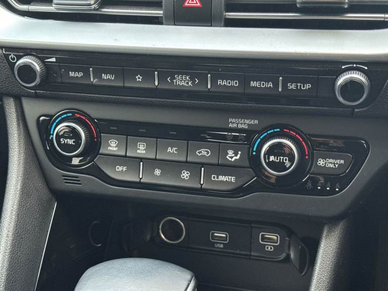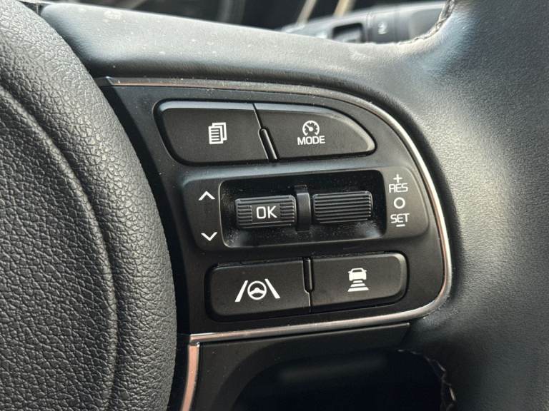 ..10.25'' Touch screen satellite navigation with european mapping and traffic messaging channel, Adaptive smart cruise control function (SCC) with stop and go, Apple car play/Android Auto with voice control, Digital clock, Drive mode selector, Driver attention warning, Emergency stop signalling system, Forward collision avoidance assist, Front parking sensors, Lane Following Assist (LFA), Lane keep assist, Motor driven power steering, Rear parking sensors, Reversing camera, Speed limiter, Trip computer with distance/fuel consumption/average speed, UVO connect, 'Shark fin' mobile antenna, 4.2'' supervision cluster with TFT colour display, 6 speakers, Bluetooth with music streaming, DAB Radio with MP3, Steering wheel mounted controls, USB connection located in centre console, USB port, All round electric windows with drivers auto up/down function, Auto dimming rear view mirror, Automatic defog system, Automatic headlight control system, Black beltline mouldings, Black side sills, Black wheel arch mouldings, Body colour bumpers, Body coloured/high gloss door mirrors, Chrome door handles, Driver's side wide angle mirror, Electrically folding/adjustable/heated door mirrors with LED indicators, Front fog lights, LED daytime running lights, LED rear combination lights, Manual headlight levelling, Matt black radiator grille, Privacy glass - Rear windows and tailgate, Projector headlamps, Rain sensing front wipers, Rear spoiler, Rear wiper, Roof rails, Solar glass, Waistline chrome coating, Welcome and follow-me home light functionality, 3 x passenger assist grips, 60/40 split/folding 2nd row of seats, All-round height adjustable headrests, Bulb type overhead console lamp with sunglasses case, Centre console storage box, Centre room lamp, Chrome coating interior door handles, Cloth/leather upholstery, Cupholders in rear armrest, Driver's seat height adjuster, Driver/passenger sunvisors with illuminated vanity mirrors, Dual zone automatic air conditioning, Front and rear door storage, Front/rear centre armrests, Headlining in Light grey, High gloss black lower console trim, High gloss black steering wheel trim, Illuminated ignition key hole, Interior door lock/unlock function, ISOFIX Child seat top tethers and anchor fixings, Leather trimmed door armrests, Leather trimmed gearshift, Leather trimmed steering wheel, Luggage area lamp, Luggage area load cover, Luggage net with hooks, Passenger seat height adjuster, Seatback pocket - front passenger, Steering wheel