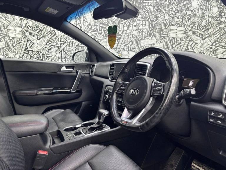 Introducing the 2021 Kia Sportage 1.6 CRDi MHEV GT-Line S, a striking SUV finished in sleek black. With 49,000 miles, one owner, two keys, and a Kia warranty valid until March 24, 2028 (provided services adhere to Kias schedule), this vehicle offers peace of mind and proven care. Powered by a 1.6-litre CRDi mild-hybrid diesel engine delivering 134 bhp, it features a DCT automatic transmission and all-wheel drive (AWD), meeting Euro 6 standards with start/stop technology. This setup provides a smooth, efficient drive with enhanced traction—ideal for tackling any terrain or weather. This Sportage GT-Line S is loaded with premium features. The navigation system with HDD delivers high-definition, reliable guidance, ensuring you reach your destination effortlessly, even on unfamiliar roads. Climate control keeps the cabin perfectly comfortable year-round, adapting to your preferences for a consistently enjoyable ride. Parking sensors front and rear simplify tight manoeuvres, offering precise alerts to park with confidence and maintain its flawless exterior—perfect for busy streets or crowded lots. Inside, the leather trim offers a luxurious, durable finish, wrapping you in comfort and style that elevates every journey while standing up to daily use. The 19" alloy wheels enhance its bold GT-Line stance, improving grip and handling for a dynamic, assured drive. A panoramic roof floods the cabin with natural light, creating an airy, spacious feel that transforms every trip into an event, while privacy glass adds a sleek touch, reducing glare and ensuring a discreet, tranquil interior. With its mild-hybrid efficiency, AWD versatility, and Kias exceptional warranty, this Sportage GT-Line S blends practicality with premium flair. Ready to impress, its available for test drives by appointment. Contact us today to see how this standout SUV can bring confidence and luxury to your everyday adventures! Let me know if youd like any adjustments or additional details! .Leather - Black with Red Piping and Stitching, Phantom Black, 10-Way Drivers and 8-Way Passengers Power Adjustable Seat, 12V Power Sockets - Front and Rear Consoles, 19in Alloy Wheels - GT Line, 3 x Passenger Assist Grips, 360 Degree Around View Monitor, 4.2in Supervision Colour Cluster Display, 60-40 Split Folding Rear Seats, 8-Speaker JBL - Premium Sound System with Subwoofer - External Amp and Front Centre Speaker, 8in Touchscreen Satellite Navigation with European Mapping and Traffic Messaging Channel - TMC, Advanced Anti-Theft System including Immobiliser and Alarm, All-Round 3-Point Seatbelts, All-Round Electric Windows with Driver and Front Passenger Auto Up-Down Function, All-Round Height Adjustable Headrests, Aluminium Door Scuff Plates, Aluminium Pedals, Android Auto with Voice Control, Anti-Lock Braking System - ABS with Electronic Brakeforce Distribution - EBD, Apple CarPlay with Voice Control, Auto Dimming Rear-View Mirror, Automatic Light Control, Black Wheel Arch Body Mouldings and Side Sills with Dark Chrome Insert, Blind-Spot Collision Warning - BCW, Bluetooth with Music Streaming, Body Coloured Door Mirrors, Body Coloured Exterior Door Handles with Chrome Insert, Centre Console Storage Box, Centre Fascia - Black High Gloss, Child Safety Rear Door Locks, Chrome Boot Sill Guard, Chrome Window Surrounds, Coat Hooks - Rear, Cupholders in Rear Armrest, DAB Radio with MP3 Compatibility, Dark Chrome Front Bumper Insert, Dark Chrome Front Grille Surround, Door Deadlocks, Drive Mode Select, Driver Attention Warning - DAW, Driver and Passenger Sunvisors with Vanity Mirror and Illumination, Drivers Seat Power Lumbar Support, Drivers Wide View Door Mirror, Dual Automatic Air Conditioning, EcoDynamics Badge, Electrically Folding-Adjustable and Heated Door Mirrors with LED Indicators, Electronic Parking Brake, Electronic Stability Control - ESC - with Downhill Brake Control - DBC, Emergency Stop Signalling - ESS, Engine Start-Stop Button with Smart Entry System, Exhaust - Dual, Forward Collision-Avoidance Assist - City - Pedestrian, Front Cabin LED Map Light with Sunglasses Case, Front Door Courtesy Reflectors, Front Parking Sensors, Front Passenger Airbag Cut Off Switch, Front Seatback Pockets, Front Seatbelt Height Adjusters, Front Wiper De-Icer, Front and Rear Centre Armrests, Front and Rear Door Storage, Gear Shift Indicator, Glovebox with Illumination, Head Rests - Front Active, Headlights - High Beam Assist - HBA, Headlining - Black, Heated Front