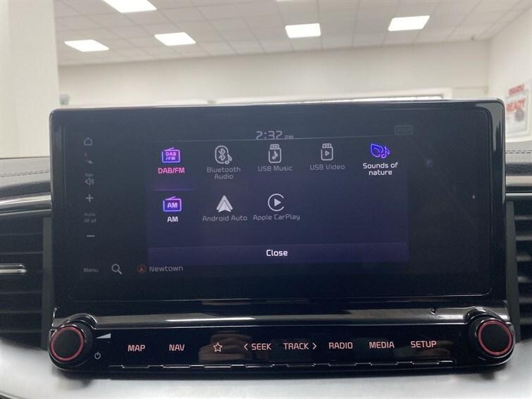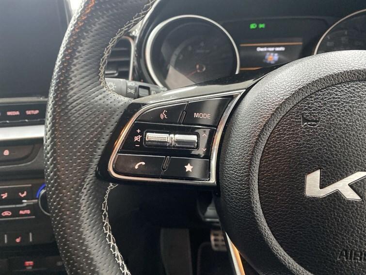1 x Front 12V socket,10.25"" touchscreen satellite navigation,12V power socket in luggage compartment,17"" GT-Line alloy wheels,3 seat bench in 2nd row,3 x passenger assist grips,4.2"" supervision colour cluster display,6 speaker audio system,60/40 split folding rear seat,Alarm system,All round 3-point seatbelts,All-round Electric Windows with Front Auto Up & Down Function,All-round height adjustable headrests,Aluminium pedals,Anti-lock braking system (ABS),Apple car play/Android Auto with voice control,Auto dimming rear view mirror,Automatic defog system,Automatic headlights control,Black headlining,Black high gloss front console garnish & door trim,Bluetooth with Voice Recognition & Music Streaming,Body colour bumpers,Body colour exterior door handles,Body coloured and dark chrome rear skid plate,Body coloured side sill mouldings,Brake assist system,Centre console storage box/armrest,Cloth/faux leather upholstery,Cruise control + speed limiter,Cupholders in centre console,Cupholders in rear armrest,DAB Radio with MP3,Dark chrome window surround,Dash illumination dimmer switch,Door courtesy lamps,Driver & Front Passenger Sunvisors with Vanity Mirror Illumination & Ticket Holder,Driver + front passenger electric lumbar support,Driver Attention Warning (DAW),Driver's seat height adjuster,Dual front side airbags,Dual Height Luggage Area Floor,Dual horn,Dual zone automatic air conditioning,EBD - Electronic brakeforce distribution,Electric adjustable/heated/folding door mirrors with LED Indicators,Electronic parking brake,Electronic stability control (ESC) and vehicle stability management (VSM),Emergency call service,Emergency stop signalling system,Engine Immobiliser & Deadlocks,Faux leather door centre trim,Forward Collision-Avoidance Assist (FCA) - City/Pedestrian/Cyclist,Front and rear door storage,Front cabin map light with sunglasses case,Front passenger airbag cut-off switch,Front Passenger Seat Height Adjuster,Front seat back pockets,Gear shift indicator,Heated front seats,Heated rear window with timer,Heated steering wheel,Height adjustable front seatbelts,High beam assist,High gloss black and dark chrome radiator grille,High gloss black door mirrors,High Gloss Black rear spoiler,Hill start assist control (HAC),Illuminated USB ports,Impact sensing auto door unlocking,Intelligent Stop and Go,Interior door lock/unlock function,ISOFIX Child seat top tethers and anchor fixings,Kia connect UVO,Lane Following Assist (LFA),Lane keep assist,Leather D...