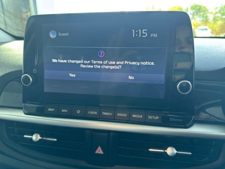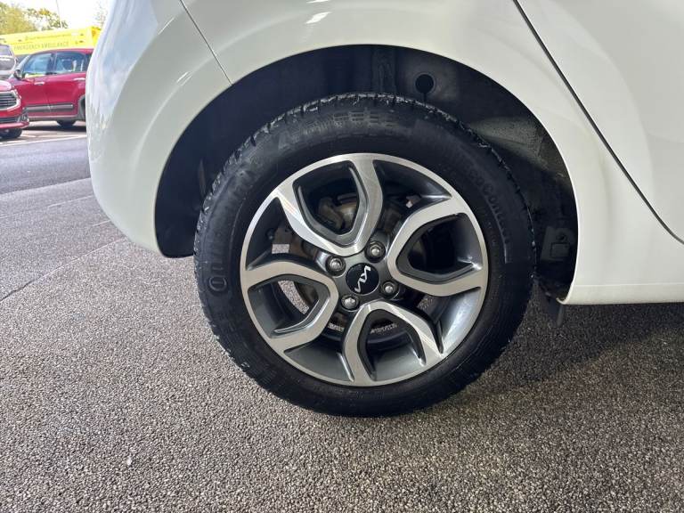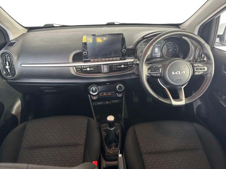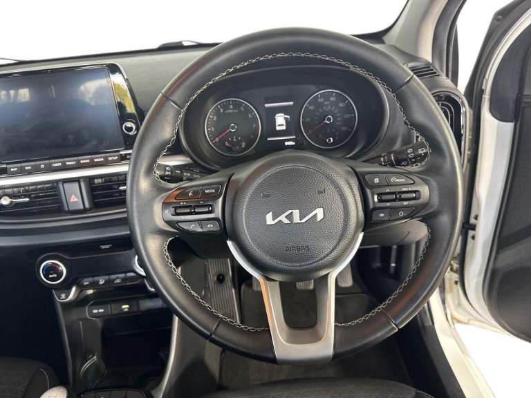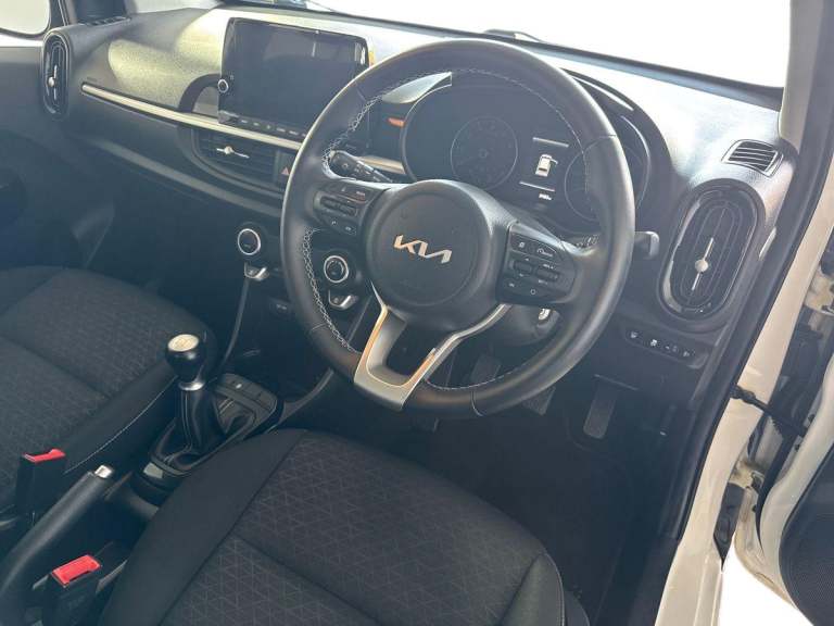 ..8'' touch screen satellite naviagtion with RDS and DAB with telematics, Apple car play/Android Auto with voice control, Cruise control + speed limiter, Emergency stop signalling system, External temperature gauge, Kia Connect (UVO), Motor driven power steering, Rear parking sensors, Reversing camera system with dynamic guidelines (Integrated into centre fascia screen), Tachometer, Trip computer, 6 speaker audio system, Bluetooth with music streaming, Steering wheel mounted controls, USB ports for connection of a media device, Automatic headlight control system, Black radiator grille with chrome surround, Body colour bumpers, Body coloured mirrors and chrome exterior handles, Day/night rear view mirror, Daytime running lights, Electric adjustable/heated/folding door mirrors with LED indicators lights, Front and rear electric windows with drivers's auto up/down function, Front fog lights, Headlamp levelling, Heated rear window, High mount brake light, MFR Multi - Focus Reflector headlights with black bezel, Rear fog lights, Rear wash/wipe, Speed variable front wipers, Tinted glass, Visible VIN plate, Welcome and follow-me home light functionality, 1 x rear coat hook, 12V power point front, 3 x passenger assist grips, 60/40 split/folding 2nd row of seats, All round height adjustable headrests, Automatic air conditioning, Centre Console with Storage Box and Sliding Armrest, Cupholders in centre console, Driver and front passenger sunvisor with vanity mirror, Driver seat height adjust, Front cabin lights, Glovebox, High gloss lower centre fascia trim, door armrest and air vents, ISOFIX Child seat top tethers and anchor fixings, Leather trimmed steering wheel and gearshift, Luggage area light, Luggage area parcel shelf, Passenger front seatback pockets, Premium cloth upholstery, Silver paint finished interior door handles, Slide/reclining front seats, Tilt adjustable steering wheel, Advanced Driver Assistance Pack - Picanto, 2 x 3-point rear seatbelts, ABS/EBD, Automatic unlocking of doors in case of impact, Dual front airbags, ESC + BAS + VSM + HAC, Front passenger airbag cut-off switch, Front seatbelt height adjusters, Front seatbelt pretensioners + load limiters, Knee airbags, Rear child proof door locks, Seatbelt warning, Side impact protection, Torque vectoring brake based and straight line stability (SLS), Traction control, Twin curtain airbags, Twin front side airbags, Tyre pressure monitoring system, Anti theft alarm, Engine immobiliser, Folding key,
