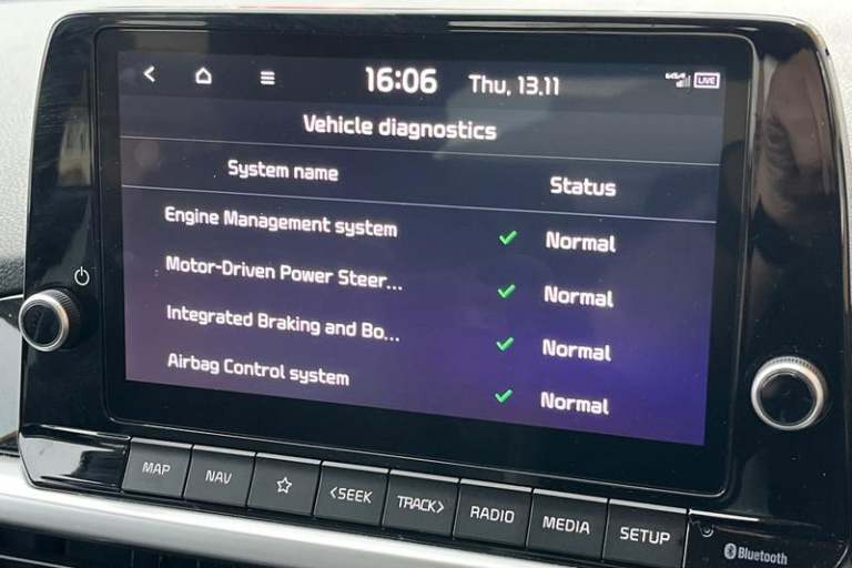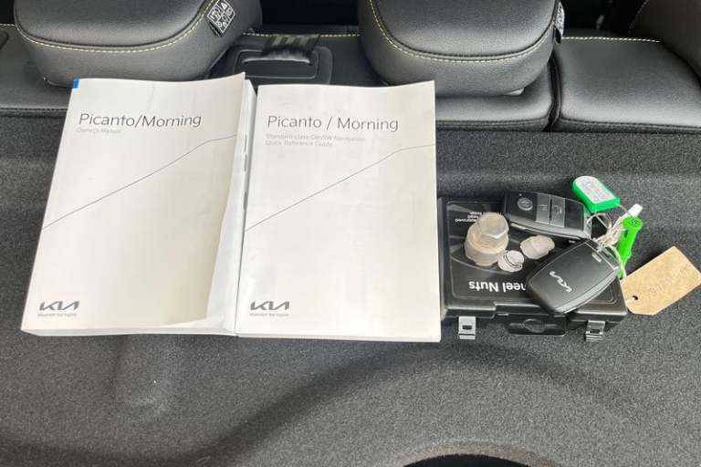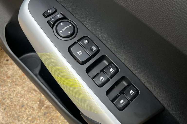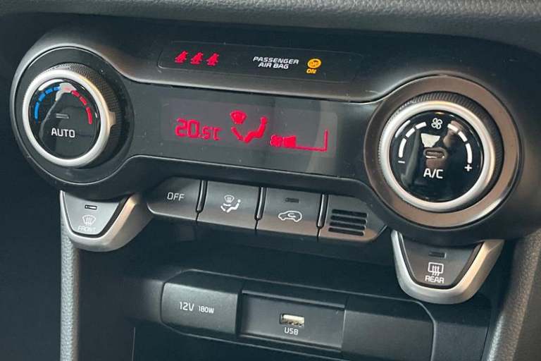 4.2 supervision monochrome cluster display, 8 touch screen satellite naviagtion with RDS and DAB with telematics, Apple car play/Android Auto with voice control, Cruise control + speed limiter, Emergency call service, Emergency stop signalling system, External temperature gauge, Forward Collision-Avoidance Assist (FCA) - City, Kia Connect (UVO), Motor driven power steering, Rear parking sensors, Reversing camera system with dynamic guidelines (Integrated into centre fascia screen), Tachometer, Trip computer, Wireless Smartphone charger, Automatic headlight control system, Bi-function projection headlights, Black beltline mouldings, Black grille with silver surround, Black side sill moulding, Black wheel arch cladding, Body colour B pillars, Body colour bumpers, Body coloured mirrors and chrome exterior handles, Day/night rear view mirror, Electric adjustable/heated/folding door mirrors with LED indicators lights, Front and rear bumpers with silver skid plates and twin exhaust, Front and rear electric windows with drivers's auto up/down function, Front fog lights, Headlamp levelling, Heated rear window, High mount brake light, LED daytime running lights, LED rear fog lights, LED rear lights, Privacy glass - Rear windows and tailgate, Rain sensor, Rear side wing doors, Rear wash/wipe, Speed variable front wipers, Tinted glass, Visible VIN plate, Welcome and follow-me home light functionality, 1 x rear coat hook, 12V power point front, 3 seat bench in 2nd row, 3 x passenger assist