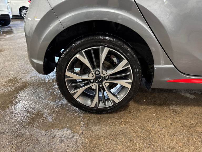 ..8'' touch screen satellite naviagtion with RDS and DAB with telematics, Apple car play/Android Auto with voice control, Cruise control + speed limiter, Emergency call service, Emergency stop signalling system, External temperature gauge, Kia Connect (UVO), Motor driven power steering, Rear parking sensors, Reversing camera system with dynamic guidelines (Integrated into centre fascia screen), Tachometer, Trip computer, Wireless Smartphone charger, 6 speaker audio system, Bluetooth with music streaming, Steering wheel mounted controls, USB ports for connection of a media device, Automatic headlight control system, Bi-function projection headlights, Black beltline mouldings, Black grille with silver surround, Body colour B pillars, Body colour bumpers, Body colour side sill mouldings, Body coloured mirrors and chrome exterior handles, Day/night rear view mirror, Electric adjustable/heated/folding door mirrors with LED indicators lights, Front and rear electric windows with drivers's auto up/down function, Front fog lights, Headlamp levelling, Heated rear window, High mount brake light, LED daytime running lights, LED rear fog lights, Privacy glass - Rear windows and tailgate, Rain sensor, Rear side wing doors, Rear wash/wipe, Speed variable front wipers, Sports front and rear bumpers with gloss black skid plates twin exhaust, Tinted glass, Visible VIN plate, Welcome and follow-me home light functionality, 1 x rear coat hook, 12V power point front, 2 seat bench in 2nd row, 3 x passenger assist grips, 60/40 split/folding 2nd row of seats, All round height adjustable headrests, Automatic air conditioning, Black and red accents front door armrest, Centre Console with Storage Box and Sliding Armrest, Cupholders in centre console, D-cut steering wheel with red stitching, Driver and front passenger sunvisors with driver's side illuminated vanity mirrors, Driver seat height adjust, Faux leather upholstery, Front cabin lights, Glovebox, Heated front seats, Heated steering wheel, High gloss lower centre fascia trim, door armrest and air vents, ISOFIX Child seat top tethers and anchor fixings, Leather trimmed steering wheel and gearshift, Luggage area light, Luggage area parcel shelf, Passenger front seatback pockets, Satin chrome interior door handles, Single front passenger seat, Slide/reclining front seats, Tilt adjustable steering wheel, Advanced Driver Assistance Pack - Picanto, 2 x 3-point rear seatbelts, ABS/EBD, Automatic unlocking of doors in case of