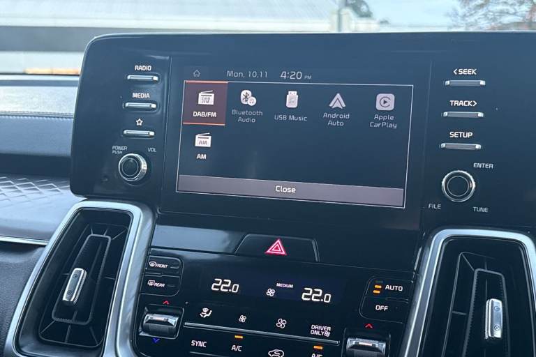 ..8'' Touchscreen with DAB, Apple car play/Android Auto with voice control, Digital cluster, Digital cockpit, Drive mode selector, Driver attention warning, eCall emergency system, Emergency stop signalling system, External temperature gauge, Forward Collision-Avoidance Assist (FCA) - City/Pedestrian/Cyclist/Junction, Front parking sensors, Intelligent speed limit assist, Lane follow assist, PAS, Rack mounted power steering, Rear parking sensor, Reversing camera system with dynamic guidelines (Integrated into centre fascia screen), Smart cruise control with stop and go functionality, Trip computer, Intelligent All-wheel drive, Terrain mode select (Mud, Snow, Sand), Audio system with 6 speakers, Multi device Bluetooth connection with voice recognition and music streaming, Radio/MP3 player, Steering wheel mounted audio controls, USB port for connection of a media device, All round electric windows with drivers auto up/down function, Auto dimming rear view mirror, Automatic defog system, Automatic headlights control, Black radiator grille, Black scuff plates, Black side sills, wheel arch body mouldings with silver sill detail, Body colour door mirrors, Body colour exterior door handles, Body coloured bumpers, Chrome window surround, Electrically folding/adjustable/heated door mirrors with LED indicators, Front and rear silver skid plates, Headlamp levelling, Heated rear window, LED daytime running lights, LED front fog lights, LED Headlights, LED High-mounted Brake Light, LED rear combination lights, LED rear fog lights, Rain sensing front wipers, Rear side wing doors, Rear spoiler, Roof rails, Tinted glass, Trailer stability assist, Windscreen Washer Level Warning, 2 seat bench in 3rd row, 2 x 3rd row USB charge port, 3 bench rear seats in 2nd row, 3 step dual automatic air conditioning, 3 x 2nd row USB charge port and 12V socket, 3 x Front USB charge port and 12V socket, 3 x passenger assist grips, 50/50 split/folding 3rd row of seats, 60:40 split remote folding and reclining 2nd row seats, Air conditioning for 3rd row of seats, Center fascia metal paint, Centre console cupholder, Centre console storage box and armrest, Cloth upholstery, Cupholders in rear armrest and doors, Door inserts, Front and rear door storage, Front seatback pockets and net, Gearshift paddles, Heated front seats, Heated steering wheel, Height adjustable head restraints, Illuminated glovebox, Interior door lock/unlock function, ISOFIX Child seat top tethers and anchor fixings,