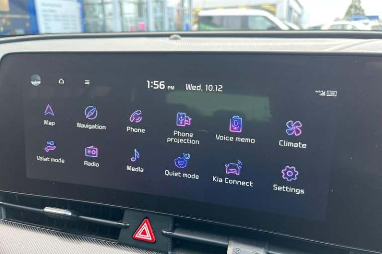 12.3 Display with navigation, 12.3 supervision colour cluster display, 360 degree around view monitor, Apple car play/Android Auto with voice control, Blind spot collision avoidance assist, Blind spot view monitor, Drive mode selector, E-call, Forward collision avoidance assist (FCA) - city/pedestrian/cyclist/junction covering, Front and rear parking sensors, Highway Driving Assist (HDA), Intelligent speed limit assist, Kia Connect (UVO), Lane Following Assist (LFA), Lane keep assist, Low washer fluid warning, Parking collision avoidance assist (PCA), Reversing camera system integrated into centre fascia screen, Smart cruise control with stop and go functionality, Speed sensitive power steering, Trip computer, Windscreen washer level indicator, Wireless Smartphone charger, All round electric windows with drivers and front passenger auto up/down function, Automatic headlight control system, Automatic window defogger, Backlite glass heated with timer, Body colour and black bumper with silver accents, Body colour door mirrors, Body colour exterior door handles, Dual LED adaptive headlamps, Electric panoramic glass sunroof (Electric one touch with safety function), Electrically adjustable/heated/folding door mirrors with LED indicators, Gloss black radiator grille, Gloss black side sill and wheel arch body mouldings, Glossy black roof rack, High beam assist, Interior electrochromic mirror, LED daytime running lights, LED front fog lamps, LED High mounted stop light, LED rear combination