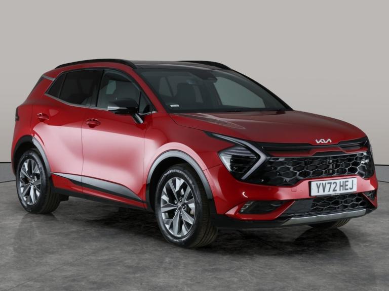 Experience comfort and technology in this striking red Kia Sportage Hybrid Automatic AWD. Enjoy the panoramic roof and sunroof for airy drives, while the premium Harman/Kardon sound system and Apple CarPlay deliver top-notch entertainment. Relax in heated and cooled Alcantara seats, and stay safe with adaptive cruise control, lane following assist, and a reversing camera. Bright LED headlights light your way, and the heated steering wheel ensures comfort whatever the weather. The perfect blend of style, innovation, and versatility. 1 service recorded, last serviced on 24/09/2025 at 25,473 miles. MOT to 24/09/2026. Visit our website for service history, online valuation, full vehicle specification plus multiple images. This vehicle is VAT qualifying. Any feature/option specified here is from 3rd party data. We cannot guarantee the accuracy of any specification supplied by a 3rd party. We recommend that you physically check the specification of the vehicle on site prior to purchase. This information does not form part of the buying contract. Terms & Conditions apply. We have over 2,000 cars available from our 10 national branches, check our website to see all our stock. Our Trustpilot rating is 4.4/5 with over 9,000 reviews.