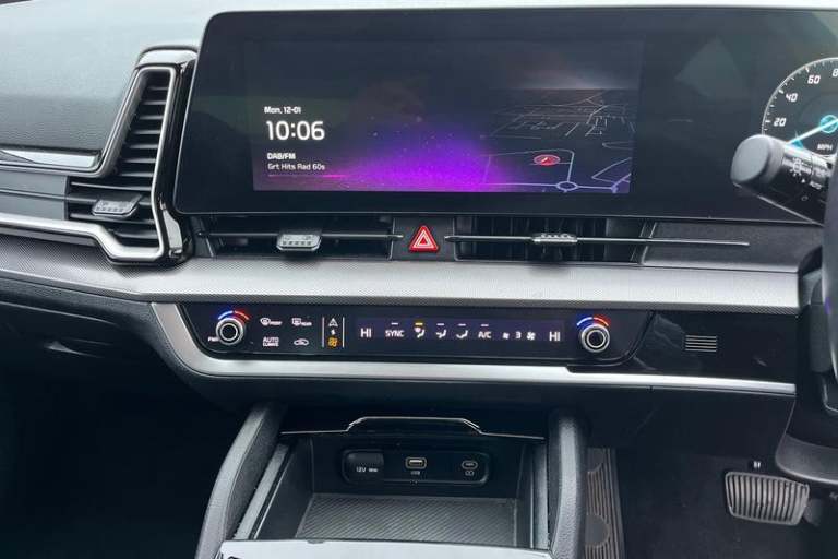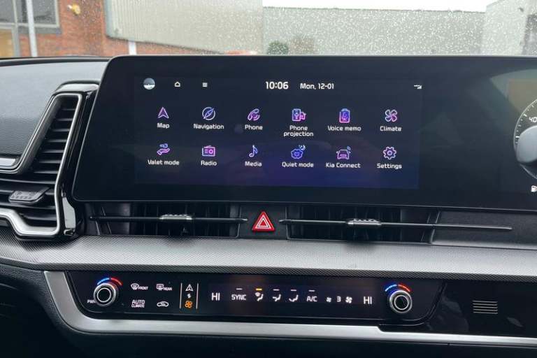 12.3 Display with navigation, 12.3 supervision colour cluster display, Apple car play/Android Auto with voice control, Drive mode selector, E-call, Forward collision avoidance assist (FCA) - city/pedestrian/cyclist/junction covering, Front and rear parking sensors, Highway Driving Assist (HDA), Intelligent speed limit assist, Kia Connect (UVO), Lane Following Assist (LFA), Lane keep assist, Low washer fluid warning, Rear view monitor, Reversing camera system integrated into centre fascia screen, Smart cruise control with stop and go functionality, Speed sensitive power steering, Trip computer, Windscreen washer level indicator, All round electric windows with drivers and front passenger auto up/down function, Automatic headlight control system, Automatic window defogger, Backlite glass heated with timer, Black side sill and wheel arch body mouldings, Body colour and black bumper with silver accents, Body colour door mirrors, Body colour exterior door handles, Electrically adjustable/heated/folding door mirrors with LED indicators, High beam assist, Interior electrochromic mirror, LED daytime running lights, LED front fog lamps, LED headlamps (low and high beam - MFR type), LED High mounted stop light, Rain sensing wipers with aero blades, Rear fog lamp, Rear privacy glass, Rear side wing doors, Rear skid plate - silver, Rear spoiler, Rear wiper, Satin finished beltline, Silver coloured inserts to bumpers, Silver radiator upper garnish and door garnish, Silver roof rack, Tinted