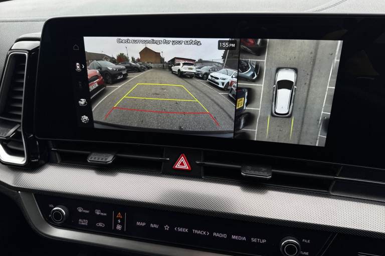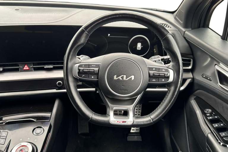 ..12.3'' Display with navigation, 12.3'' supervision colour cluster display, 360 degree around view monitor, Apple car play/Android Auto with voice control, Blind spot collision avoidance assist, Blind spot view monitor, Drive mode selector, E-call, Forward collision avoidance assist (FCA) - city/pedestrian/cyclist/junction covering, Front and rear parking sensors, Highway Driving Assist (HDA), Intelligent speed limit assist, Kia Connect (UVO), Lane Following Assist (LFA), Lane keep assist, Low washer fluid warning, Parking collision avoidance assist (PCA), Remote smart parking assist, Reversing camera system integrated into centre fascia screen, Smart cruise control with stop and go functionality, Smart power tailgate, Speed sensitive power steering, Trip computer, Windscreen washer level indicator, Wireless Smartphone charger, Intelligent Stop and Go, Terrain mode select (Mud, Snow, Sand), Bluetooth audio streaming, DAB Radio with MP3, Harman Kardon premium sound system, Rear USB port, Steering wheel mounted audio controls, USB C type charging ports on centre console, USB C type charging ports on side of front seats, USB port for connection of a media device, All round electric windows with drivers and front passenger auto up/down function, Automatic headlight control system, Automatic window defogger, Backlite glass heated with timer, Body colour and black bumper with silver accents, Body colour exterior door handles, Body colour radiator upper garnish and door garnish, Dual LED adaptive headlamps, Electric panoramic glass sunroof (Electric one touch with safety function), Electrically adjustable/heated/folding door mirrors with LED indicators, Front and rear chrome skid plates, Gloss black door mirrors, Gloss black radiator grille, Gloss black side sill and wheel arch body mouldings, Glossy black roof rack, High beam assist, Interior electrochromic mirror, LED daytime running lights, LED front fog lamps, LED High mounted stop light, LED rear combination lamp, Rain sensing wipers with aero blades, Rear fog lamp, Rear privacy glass, Rear side wing doors, Rear spoiler, Rear wiper, Satin finished beltline, Tinted rear glass, Trailer stability assist, 10 way driver/8 way passenger electrically power adjustable seats, 12V power socket in front centre fascia and luggage compartment, 3 seat bench in 2nd row, 3 x passenger assist grips, 40/20/40 split folding rear seat, All-round height adjustable headrests, Ambient lighting, Black headlining, Centre console