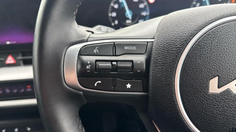 ..12.3'' Display with navigation, 12.3'' supervision colour cluster display, Apple car play/Android Auto with voice control, Cruise control + speed limiter, Drive mode selector, E-call, Forward collision avoidance assist (FCA) - city/pedestrian/cyclist/junction covering, Front and rear parking sensors, Intelligent speed limit assist, Kia Connect (UVO), Lane Following Assist (LFA), Lane keep assist, Low washer fluid warning, Rear view monitor, Reversing camera system integrated into centre fascia screen, Speed sensitive power steering, Trip computer, Windscreen washer level indicator, Intelligent Stop and Go, 6 speaker audio system, Bluetooth audio streaming, DAB Radio with MP3, Rear USB port, Steering wheel mounted audio controls, USB C type charging ports on centre console, USB C type charging ports on side of front seats, USB port for connection of a media device, All round electric windows with drivers and front passenger auto up/down function, Automatic headlight control system, Automatic window defogger, Backlite glass heated with timer, Black side sill and wheel arch body mouldings, Body colour and black bumper with silver accents, Body colour door mirrors, Body colour exterior door handles, Electrically adjustable/heated/folding door mirrors with LED indicators, High beam assist, Interior electrochromic mirror, LED daytime running lights, LED front fog lamps, LED headlamps (low and high beam - MFR type), LED High mounted stop light, Rain sensing wipers with aero blades, Rear fog lamp, Rear privacy glass, Rear side wing doors, Rear skid plate - silver, Rear spoiler, Rear wiper, Satin finished beltline, Silver radiator upper garnish and door garnish, Silver roof rack, Trailer stability assist, 12V power socket in front centre fascia and luggage compartment, 2nd row personal lamps, 3 seat bench in 2nd row, 3 x passenger assist grips, 40/20/40 split folding rear seat, All-round height adjustable headrests, Centre console storage box, Cloth/faux leather upholstery, Cupholders in rear armrest, Door courtesy lamps, Drink holder at centre armrest, Driver and front passenger side sunvisors with illuminated vanity mirrors, Drivers seat power lumbar support, Dual zone climate control, Electric height adjustable front seats, Front and rear door storage, Front seat and rear pockets, Front/rear centre armrests, Gear shift indicator, Glovebox illumination, Heated front and outer rear seats, Heated steering wheel, Interior door lock/unlock function, ISOFIX Child