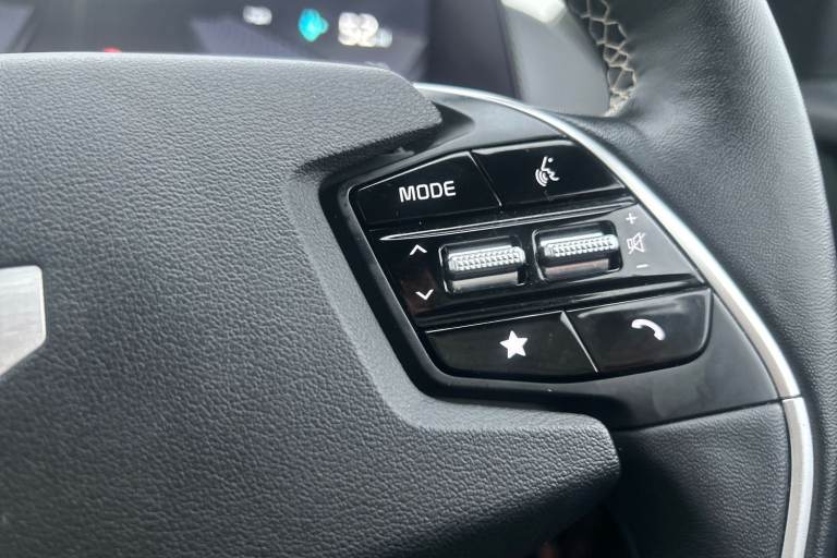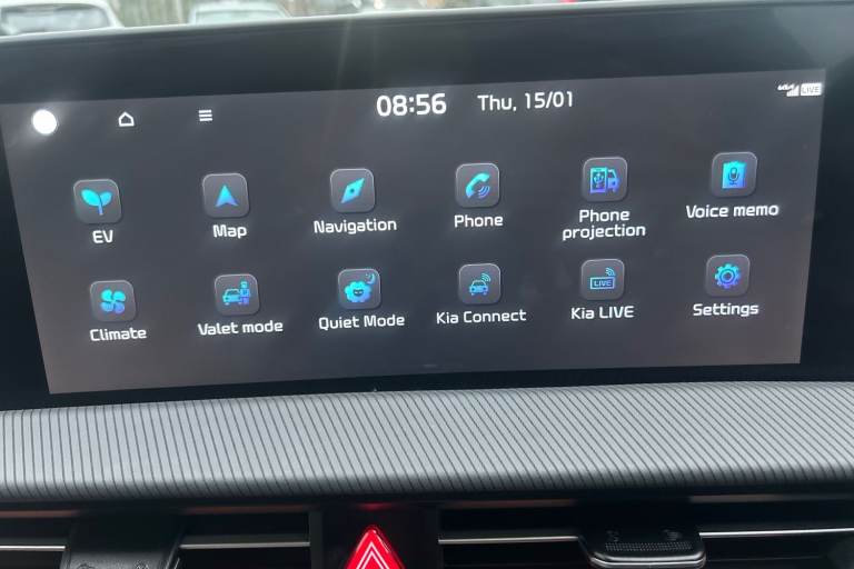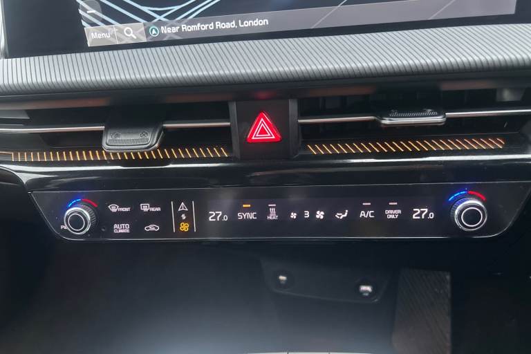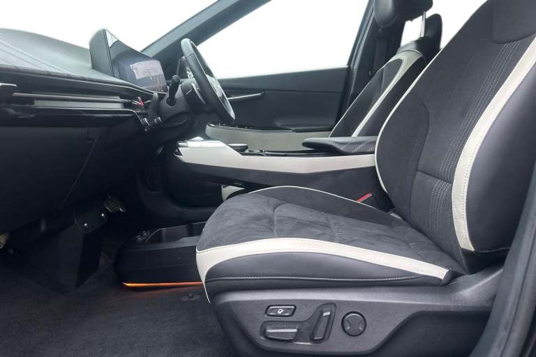 ..12.3'' Curved driver display screen, 12.3'' Curved touchscreen navigation, Apple car play/Android Auto with voice control, Blind-spot collision avoidance assist (BCA) with Rear cross traffic assist (RCTA) and Safe exit assist (SEA), Bluetooth connectivity with voice recognition, Drive mode selector, Driver attention warning, E-call, Emergency stop signalling system, Forward Collision-Avoidance Assist (FCA) 1.5 - City/Pedestrian/Cyclist/Junction turning, Front parking sensors, Highway Driving Assist (HDA), Intelligent speed limit assist (ISLA), Lane Following Assist (LFA), Lane keep assist, Low washer fluid warning, Navigation based smart cruise control with stop and go functionality, Power assist steering, Rear parking sensors, Reversing camera with dynamic guide lines, Tailgate, UVO connect, Wireless Mobile Phone Charger, 11 kW AC onboard charger, 5m Type 2 to type 2 charging cable, Charging port door opening button with a small light inside the door, 2 x USB-C charge port on front seats, 3 x Front USB charge port (two for C-type / one for USB), 6 speaker audio system, Steering wheel mounted controls, USB port for connection of a media device, All round electric windows with drivers and front passenger auto up/down function, Auto dimming rear view mirror, Automatic defog system, Automatic headlight control system, Black side sills, Body colour exterior door handles - flush, Deluxe door scuff plates, Dual LED headlights with adaptive driving beam, Electrically folding/adjustable/heated door mirrors with LED indicators, GT-Line exterior styling, Heated rear window, High gloss black beltline, High gloss black door garnish, High gloss black door mirrors, High level LED brake light, LED daytime running lights, LED rear combination lights, LED rear fog lights, Rain sensing front wipers, Rear privacy glass, Rear side wing doors, Rear spoiler, Rear wiper, Solar glass windshield, 1 x Front 12V socket, 1 x Luggage compartment 12V socket, 3 seat bench in 2nd row, 60:40 split remote folding rear seats, All-round height adjustable headrests, Alloy pedals, Ambient lighting, Centre console cupholders, Centre console with open storage compartment and armrest, Cloth headlining, Driver and front passenger premium relaxion seats, Driver and passenger sunvisors with illuminated LED vanity mirrors, Driver power adjusted memory seat with front passenger power seat with 2-way electric lumbar, Dual automatic air conditioning, Front and rear door storage, Front and rear