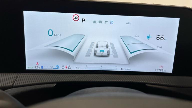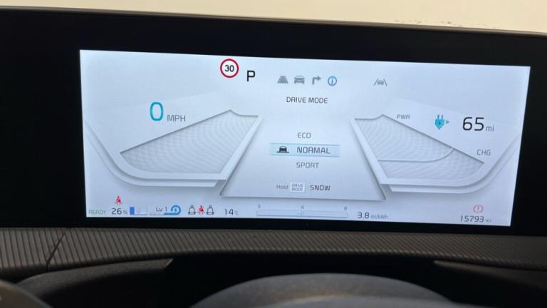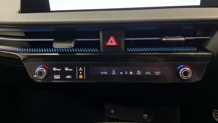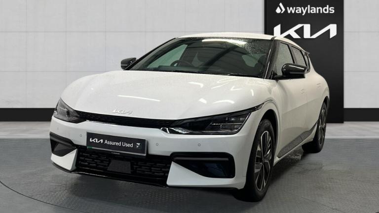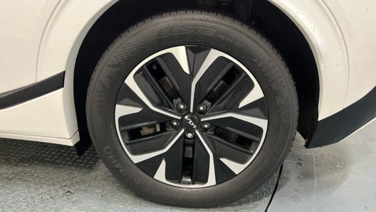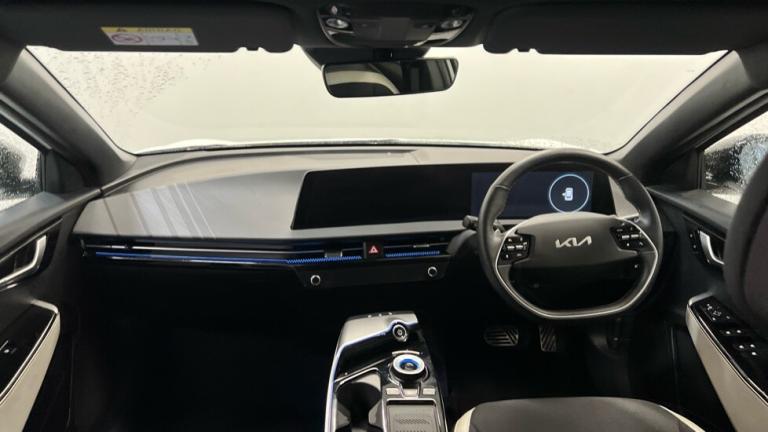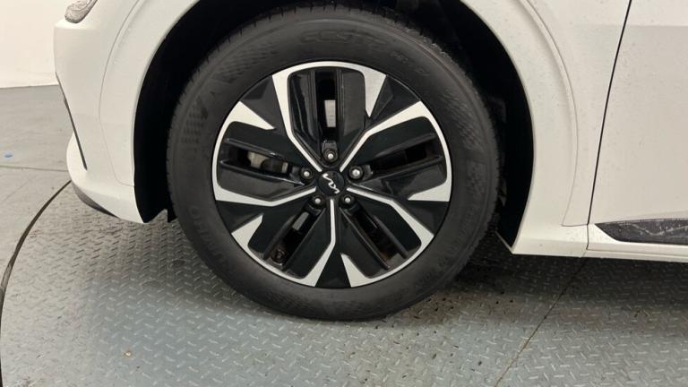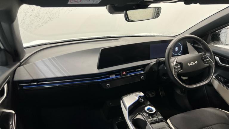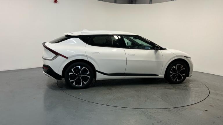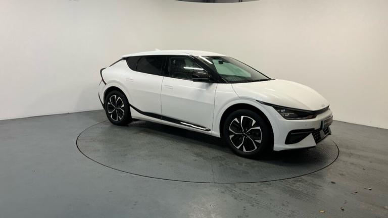 ..12.3'' Curved driver display screen, 12.3'' Curved touchscreen navigation with free 7-year Kia Connect services, 19'' Alloy wheels, 2 x 12V socket (1 x front / 1 x luggage compartment), 5 x USB charge port (Front: two for C-type and one for USB / Rear: 2 x C-type), 60:40 split remote folding rear seats, All-round electric windows with front auto up and down function, Alloy pedals, Ambient lighting, Auto-dimming rear-view mirror, Black suede seats with white artificial leather bolsters, Blind-spot collision avoidance assist (BCA) with rear-cross traffic assist (RCTA) and safe exit assist (SEA), Body coloured exterior flush door handles, Deluxe door scuff plates, Drive mode select, Driver and front passenger premium relaxation seats, Driver power adjusted memory seat with front passenger power seat with 2-way electric lumbar, Dual LED headlights with adaptive driving beam, Dual automatic air conditioning, Dual motor with 320bhp, Ecall, Electrically folding adjustable and heated door mirrors with integrated LED indicator lights, Electronic parking brake (EPB) with auto hold function, Engine start/stop button with smart entry system, Forward collision avoidance assist (FCA) - city/pedestrian/cyclist/junction turning, Free 7-year Kia Connect services, Front parking sensors, GT-Line exterior styling, Heated front seats, Heated front seats and heated steering wheel, Heated steering wheel, High gloss black beltline, High gloss black door garnish, High gloss black door mirrors, Highway driving assist (HDA), LED headlights rear lights and daytime running lights, Metal painted interior door handles, Navigation-based smart cruise control with stop and go functionality, Power adjustable lumbar support - drivers seat, Rain sensing front wipers, Rear parking sensors, Rear privacy glass, Rear spoiler, Solar glass windshield, Steering wheel mounted controls, Tyre mobility kit (TMK), Vehicle-to-Load (V2L), Wireless mobile phone charger
