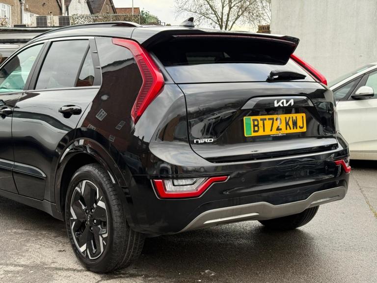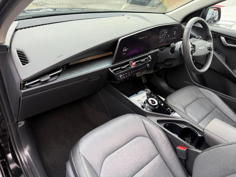 This 2023 Kia Niro 4 is a superb example, boasting a full service history and having had only one owner from new. As an electric vehicle, it offers a substantial battery total capacity of 68 kWh, providing a maximum range of 285 miles when new. This impressive electric Kia Niro also features a heated steering wheel for added comfort, a reversing camera with dynamic guidelines integrated into the centre fascia screen for easier parking, and automatic headlight control. Inside, you'll appreciate the convenience of Android Auto and Apple CarPlay with voice control, along with a driver's power adjusted memory seat.The electric capabilities of this Kia Niro are a significant highlight, with a maximum range of 285 miles from its 68 kWh battery, setting it apart from many other vehicles. Charging is also efficient, taking approximately 9 hours and 25 minutes for a full charge at home using a 7kW charger, and a rapid 43 minutes from empty to 80% on the fastest public chargers. These charging times and the extensive range demonstrate how this electric Kia Niro is designed for both everyday use and longer journeys, offering a practical and advanced driving experience.