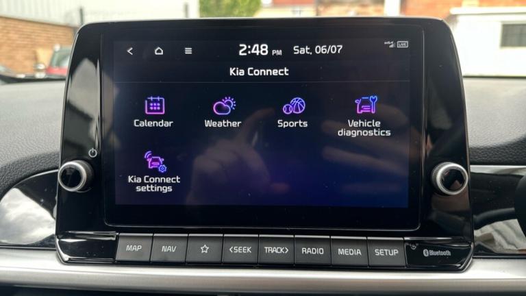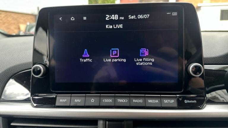 ..16'' Alloy Wheels (X-Line), 4.2'' Supervision Monochrome Cluster Display, 6-speaker audio System, 60:40 Split Folding 2nd Row Seats, 8'' Touchscreen Satellite Navigation featuring Kia Connect (UVO), ABS with Electronic Brakeforce Distribution (EBD) and Brake-Assist System (BAS), Adjustable and Heated Door Mirrors with LED Indicators, All-round Height Adjustable Headrests, Android Auto with voice control, Anti-Theft Alarm System, Apple CarPlay and Android Auto, Apple CarPlay with voice control, Automatic Air Conditioning, Automatic Headlight Control, Bi-Function Projection Headlights, Black Radiator Grille with Chrome Surround, Black and Red Accents Front Door Armrest, Black and Red Faux Leather Upholstery, Bluetooth with Music Streaming, Body Coloured Mirrors, Body Coloured Side Sill Mouldings, Chrome Exterior Door Handles, Cruise Control and Speed Limiter, D-Cut Steering Wheel with Red Stitching, Daytime Running Lights, Driver and Front Passenger Sunvisors with Vanity Mirror (Illuminated Driver's Side), Driver's Seat Height Adjuster, Electrically Folding, Electronic Stability Control (ESC) and Vehicle Stability Management (VSM), Forward Collision-Avoidance Assist (FCA) City, Free 7-year Kia Connect (UVO) services, Front Electric Windows, Front Fog Lights, Front Passenger Seatback Pocket, Front Seatbelt Height Adjusters, Front and Rear Electric Windows (Driver's Auto Up/Down), Heated Front Seats and Steering Wheel, High Gloss Lower Centre Fascia Trim Door Armrest and Air Vents, Hill-start Assist Control (HAC), LED Daytime Running Lights, LED Rear Lights, Leather Trimmed Steering Wheel and Gearshift, Privacy Glass (Rear Windows and Tailgate), Rear Fog Light, Rear Parking Sensors, Refined Front and Rear Bumpers with Silver Skid Plates and Twin Exhaust, Remote Central Door Locking and Fold-away Key, Reversing Camera System with Dynamic Guidelines, Smart Key with Engine Start/Stop Button, Speed Sensing Auto Door Locking, Steering Wheel Mounted Controls, Torque Vectoring Brake Based and Straight-Line Stability (SLS), Trip Computer, Twin Front Side and Curtain Airbags, USB Port, Wireless Mobile Phone Charger