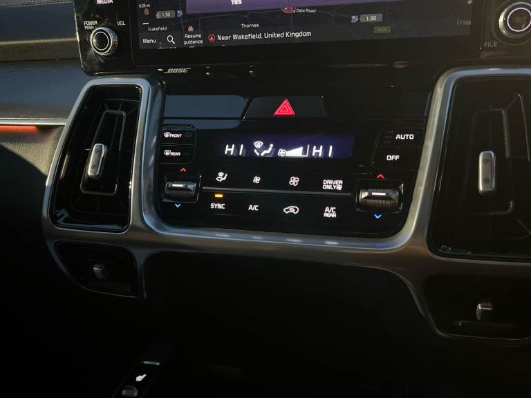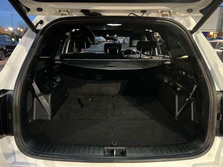 ..10.25'' touchscreen satellite navigation, 360 degree around view monitor, Apple car play/Android Auto with voice control, Blind spot collision avoidance assist, Blind spot monitor camera, Customisable Head Up Display, Digital cluster, Digital cockpit, Drive mode selector, Driver attention warning, eCall emergency system, Emergency stop signalling system, External temperature gauge, Forward Collision-Avoidance Assist (FCA) - City/Pedestrian/Cyclist/Junction, Front parking sensors, Highway Driving Assist (HDA), Intelligent speed limit assist, Lane follow assist, Parking collision avoidance assist (PCA), PAS, Rear cross traffic assist, Rear parking sensor, Remote Smart Park Assist (RSPA), Reversing camera system with dynamic guidelines (Integrated into centre fascia screen), Smart cruise control with stop and go functionality, Smart power tailgate, Tailgate, Trip computer, Wireless Smartphone charger, Intelligent All-wheel drive, Self levelling rear suspension, Terrain mode select (Mud, Snow, Sand), Bose premium sound system with 12 speakers, Multi device bluetooth connection with music streaming, Radio/MP3 player, Steering wheel mounted audio controls, USB port for connection of a media device, All round electric windows auto up/down function, Auto dimming rear view mirror, Automatic defog system, Automatic headlights control, Black roof rails, Black side sills, wheel arch body mouldings with silver sill detail, Black side window surrounds, Body coloured bumpers, Body coloured top and black lower mirror caps, Chrome window surround, Electrically folding/adjustable/heated door mirrors with LED indicators, Front and rear silver skid plates, Gloss black radiator grille, Headlamp levelling, Heated rear window, LED Bi-Function headlights with LED indicators, LED daytime running lights, LED front fog lights, LED High-mounted Brake Light, LED rear combination lights, LED rear fog lights, Metal scuff plates, Panoramic sunroof with tilt/slide function and automatic electric roll blinds, Premium paint, Privacy glass, Rain sensing front wipers, Rear side wing doors, Rear spoiler, Rear wiper, Satin chrome exterior door handles, Trailer stability assist, Variable front intermittent wipers, Windscreen Washer Level Warning, 10 way power adjustable driver seat with 4 way electric lumbar support and integrated memory system, 2 seat bench in 3rd row, 2 x 3rd row USB charge port, 2nd row window blinds, 3 bench rear seats in 2nd row, 3 step dual automatic air conditioning, 3