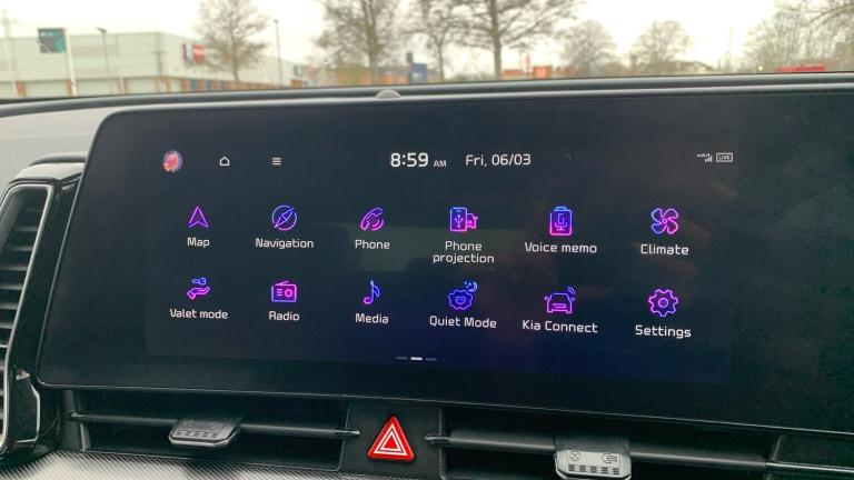 12.3in Display with Navigation12.3in Supervision Colour Cluster Display12v Power Socket - Front Centre Fascia and Luggage Compartment6-Speaker SystemAndroid Auto and Apple Carplay with Voice ControlBluetooth with Music StreamingFree 7-year Kia Connect Services - UVOUSB Port for Connection of a Media DeviceUSB-C Charging Ports on Centre ConsoleUSB-C Charging Ports on the Side of Front SeatsCruise Control with Speed LimiterDrive Mode SelectForward Collision-avoidance Assist - FCA - City-Pedestrian-Cyclist-Junction CoveringFront Parking SensorsLow Washer Fluid WarningRear Parking SensorsRear View Monitor - RVMReversing Camera SystemTrip ComputerTyre Pressure Monitoring System - TPMSWindscreen Washer Level Warning18in Alloy WheelsAll-Round Electric Windows with Driver and Front Passenger Auto Up-Down FunctionBacklite Glass Heated with TimerBlack Bumper with Silver AccentsBlack Side Sill and Wheel Arch Body MouldingsBody Coloured Door MirrorsBody Coloured Exterior Door HandlesDoor Courtesy LampElectrically Folding-Adjustable and Heated Door Mirrors with LED IndicatorsLocking Wheel NutsRear Privacy GlassRear SpoilerSatin Finish BeltlineSilver Door GarnishSilver Radiator Upper GarnishSilver Roof RailsTMK - Tyre Mobility KitAutomatic Headlight ControlLED Daytime Running LightsLED Front Fog LampsLED Headlamps - Low and High Beam - MFR TypeLED High Mounted Stop Light3 x Passenger Assist Grips40-20-40 Split Folding Rear SeatsAll-round Height Adjustable HeadrestsAluminium Pattern Finish Centre Fascia and Door GarnishAuto Window DefoggerCentre Console Storage BoxCoat Hooks - RearCupholders in Rear ArmrestDrink Holder at Centre ArmrestDriver and Passenger Sunvisors with Vanity Mirror and IlluminationDual Zone Climate ControlElectronic Chromic MirrorFront and Rear Door StorageFront Power Adjustable SeatsFront Seatback PocketsGlovebox with IlluminationHeated Front SeatsHeated Outer Rear SeatsHeated Steering WheelLuggage Area Load CoverLuggage LampLuggage Net HooksMetal Paint Interior Door HandlesOverhead Console LampRain Sensing Aero Blade WiperRear Cabin LightRear Ventilation DuctSeats - Drivers Lumbar SupportSteering Wheel - LeatherSteering Wheel Mounted Audio ControlsTilt and Telescopic Steering Wheel AdjustmentPower SteeringAdvanced Anti-Theft System including Immobiliser and AlarmAll-Round 3-Point SeatbeltsAnti-Lock Braking System - ABSChild Safety Rear Door LocksDBC - Downhill Brake