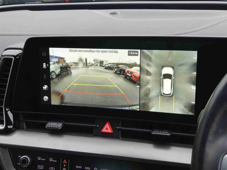 ..12.3'' Display with navigation, 12.3'' supervision colour cluster display, 360 degree around view monitor, Apple car play/Android Auto with voice control, Blind spot collision avoidance assist, Blind spot view monitor, Drive mode selector, E-call, Forward collision avoidance assist (FCA) - city/pedestrian/cyclist/junction covering, Front and rear parking sensors, Highway Driving Assist (HDA), Intelligent speed limit assist, Kia Connect (UVO), Lane Following Assist (LFA), Lane keep assist, Low washer fluid warning, Parking collision avoidance assist (PCA), Reversing camera system integrated into centre fascia screen, Smart cruise control with stop and go functionality, Smart power tailgate, Speed sensitive power steering, Trip computer, Windscreen washer level indicator, Wireless Smartphone charger, Intelligent Stop and Go, Bluetooth audio streaming, DAB Radio with MP3, Harman Kardon premium sound system, Rear USB port, Steering wheel mounted audio controls, USB C type charging ports on centre console, USB C type charging ports on side of front seats, USB port for connection of a media device, All round electric windows with drivers and front passenger auto up/down function, Automatic headlight control system, Automatic window defogger, Backlite glass heated with timer, Body colour and black bumper with silver accents, Body colour exterior door handles, Body colour radiator upper garnish and door garnish, Dual LED adaptive headlamps, Electric panoramic glass sunroof (Electric one touch with safety function), Electrically adjustable/heated/folding door mirrors with LED indicators, Front and rear chrome skid plates, Gloss black door mirrors, Gloss black radiator grille, Gloss black side sill and wheel arch body mouldings, Glossy black roof rack, High beam assist, Interior electrochromic mirror, LED daytime running lights, LED front fog lamps, LED High mounted stop light, LED rear combination lamp, Rain sensing wipers with aero blades, Rear fog lamp, Rear privacy glass, Rear side wing doors, Rear spoiler, Rear wiper, Satin finished beltline, Silver coloured inserts to bumpers, Tinted rear glass, Trailer stability assist, 10 way driver/8 way passenger electrically power adjustable seats, 12V power socket in front centre fascia and luggage compartment, 3 seat bench in 2nd row, 3 x passenger assist grips, 40/20/40 split folding rear seat, All-round height adjustable headrests, Ambient lighting, Black headlining, Centre console storage box, Cupholders in rear
