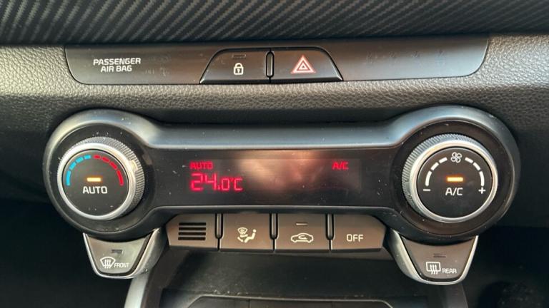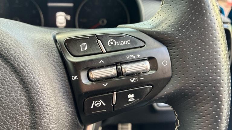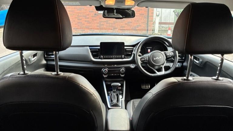 ..17'' GT-Line alloy wheels, 4.2'' Supervision colour cluster display, 6-Speaker audio system, 8'' Touchscreen display, 8'' Touchscreen navigation featuring Free 7-year Kia Connect services, All-round electric windows (with driver's auto down function), Alloy pedals, Android Auto with voice control, Apple CarPlay and Android Auto via connectivity, Apple CarPlay with voice control, Auto-dimming rear-view mirror, Automatic air conditioning, Automatic headlights, Bi-function projection headlights with static bending, Black and body coloured bumpers, Black electric folding door mirrors, Black high gloss centre fascia, Black rear spoiler with high-mounted brake light, Black side sills door garnish and wheel arch trims, Blind spot collision avoidance (DCT only), Blind spot collision warning, Bluetooth with music streaming, Chrome side window trim, Cruise control and speed limiter, D-cut perforated leather trimmed steering wheel, Drive mode select (DCT only), Duel climate control, Electrically adjustable heated and folding door mirrors with LED indicator lights, Forward collision-avoidance assist (FCA) (city/pedestrian/cyclist), Free 7-year Kia Connect services, Front USB, Front and rear silver skid plates, Front parking sensors, GT-Line black cloth and faux leather upholstery, GT-Line body-kit, Gloss black door mirrors with matt black lower housing, Heated front seats and steering wheel, Heated seats, Heated steering wheel, High gloss black and satin radiator grille, Intelligent speed limit warning (ISLW), LED Bi-function projection headlights (Multi MFR), LED daytime running lights, LED front fog lights, LED rear combination lamps, Leather trimmed steering wheel and gearshift, Luggage net, Passenger seat height adjust, Privacy glass (rear windows and tailgate), Rain sensing front wipers, Rear USB charging port, Rear parking sensors, Reversing camera, Roof rails, Smart cruise control (DCT only), Smart key with engine start/stop button, Steering wheel mounted controls