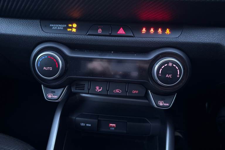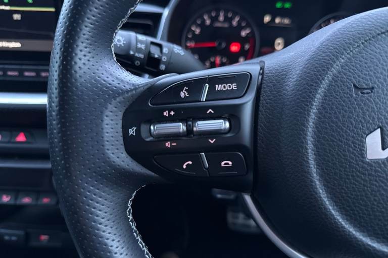 ..4.2'' supervision colour cluster display, 8'' touchscreen navigation, Apple car play/Android Auto with voice control, Blind spot collision avoidance assist, Blind spot collision warning, Drive mode selector, Electric power steering, Emergency call service, Emergency stop signalling system, External temperature display, Forward Collision-Avoidance Assist (FCA) - City/Pedestrian/Cyclist, Front parking sensors, Intelligent speed limit warning, Lane keeping assist system (LKAS), Driver attention warning (DAW) and High beam assist (HBA), Rear parking sensor, Reversing camera system, Smart cruise control, Trip computer, Intelligent Stop and Go, Audio system with 6 speakers, Bluetooth with music streaming, Front USB port, Steering wheel mounted controls, All round electric windows with drivers auto up/down function, Auto dimming rear view mirror, Automatic defog system, Automatic headlights control, Black rear spoiler with high mounted braking light, Black side sill, door garnish and wheel arch trims, Black/body colour bumpers, Body coloured exterior door handles, Chrome side window trim, Electrically adjustable/heated/folding door mirrors with LED indicators, Front and rear silver skid plates, Gloss black door mirrors with matt black lower housing, GT-Line body kit, Headlight levelling device, Heated rear window, High gloss black and satin radiator grille, LED Bi-function projection headlights with static bending, LED daytime running lights, LED front fog lights, LED position light, LED rear combination lights, Privacy glass - Rear windows and tailgate, Rain sensing front wipers, Rear fog lights, Rear side wing doors, Rear wash/wipe, Roof rails, Shark fin antenna, Solar windshield glass, Speed variable front aeroblade wipers, Tinted glass, Welcome and follow-me home light functionality, Windscreen Washer Level Warning, 12V power point front, 3 seat bench in 2nd row, 60/40 split folding rear seat, Air filter, All-round height adjustable headrests, Aluminium pedals, Automatic air conditioning, Centre armrest storage box, Centre console with cupholders, D-Cut perforated leather trimmed steering wheel, Dash illumination dimmer switch, Driver's seat height adjuster, Front and centre cabin lights, Front and rear door map pockets with bottle holder, Gear shift indicator, Glovebox illumination, GT-Line cloth/faux leather upholstery, Heated front seats, Heated steering wheel, ISOFIX Child seat top tethers and anchor fixings outer rear seats, Leather trimmed gearshift,