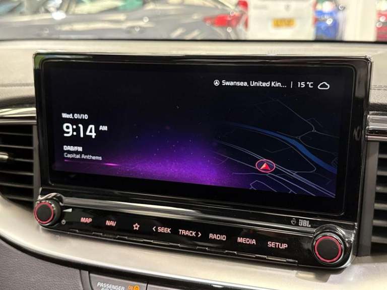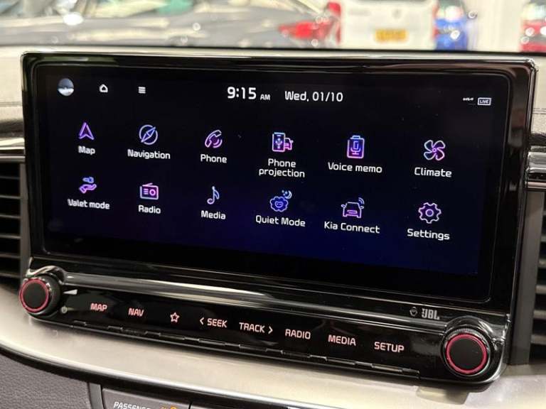10.25in Touchscreen Satellite Navigation, 2x Front USB Charge Ports - 1x Type C, 8-Speaker JBL - Premium Sound System, Android Auto with Voice Control, Apple CarPlay with Voice Control, Bluetooth, Free 7-year Kia Connect Services - UVO, Front and Luggage Area 12V Power Sockets, Rear Console USB C-Type Charge Port, Shark Fin Antenna - Gloss Black, Wireless Mobile Phone Charger, Blind Spot Collision Warning - BCW, Drive Mode Select - Normal-Sport, Driver Attention Warning - DAW, Forward Collision-Avoidance Assist - City - Pedestrian - Cyclist, Reversing Camera System with Dynamic Guidelines, Smart Cruise Control with Stop and Go Functionality, Smart Park Assist System - SPAS - Parallel-Perpendicular with Front and Rear Parking Sensors, Trip Computer, Tyre Pressure Monitoring System - TPMS, Windscreen Washer Level Warning, 18in Alloy Wheels - GT-Line, All-Round Electric Windows with Auto Up and Down Function, Black Side Sill Mouldings with Body Coloured Inserts, Black Wheel Arch Trims, Body Coloured Bumpers, Body Coloured Exterior Door Handles, Body Coloured Rear Spoiler, Dark Chrome Window Surrounds, Electrically Folding - Adjustable and Heated Door Mirrors with LED Indicator Lights, GT-Line Styling Pack, Heated Rear Window with Timer, High Gloss Black Door Mirrors with Matt Black Lower Housing, High Gloss Black and Dark Chrome Radiator Grille, High Glossy Black Roof Rails, Locking Wheel Nuts, Panoramic Sunroof - Tilting and Sliding Function - Automatic Electric Roll Blind, Privacy