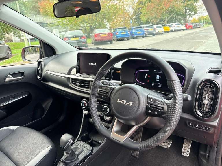 This 2024 Kia Picanto GT-Line S boasts a full service history, offering peace of mind for its next owner. Powered by an efficient 1.2L Euro 6 petrol engine, this model combines practicality with a sporty GT-Line S trim. Inside, you'll find modern conveniences such as automatic air conditioning for a comfortable cabin temperature, Bluetooth connectivity for seamless audio streaming and calls, and a wireless mobile phone charger to keep your devices powered up on the go. The automatic headlight control ensures your lights are always set correctly, while the striking LED front lightbar, including LED headlights, enhances both visibility and the car's distinctive appearance.The Kia Picanto GT-Line S stands out with its thoughtful features, indicating a superior driving experience compared to other vehicles in its class. Its low insurance group rating makes it an economical choice for many drivers. This well maintained and feature packed Picanto is ready for its new home.