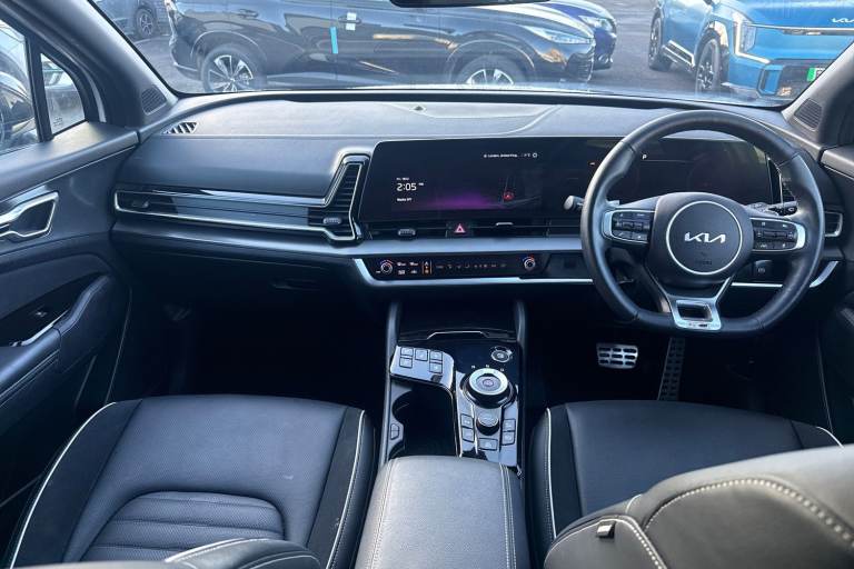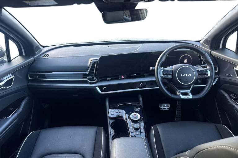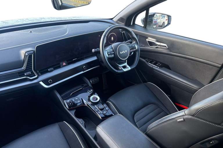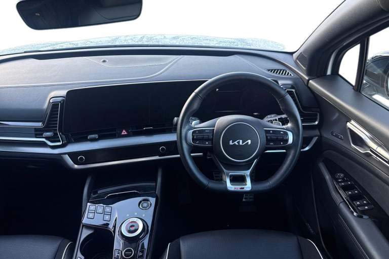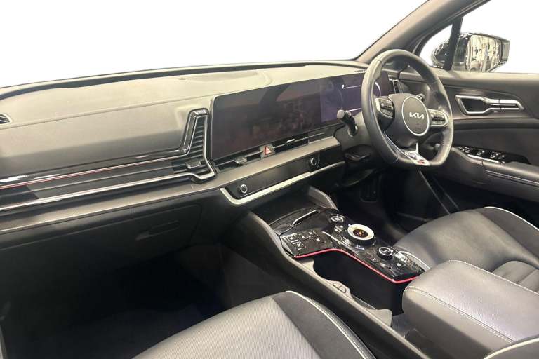 ..12.3'' Driver display screen, 12.3'' Touchscreen navigation system, 2 rear USB-C ports, 360 degree around view monitor, Apple car play/Android Auto, Blind spot collision avoidance assist, Blind spot view monitor, Drive mode selector, Driver attention warning, E-call, Emergency stop signalling system, Forward collision avoidance assist (FCA) - city/pedestrian/cyclist/junction covering, Front and rear parking sensors, Highway Driving Assist (HDA), Intelligent speed limit assist, Kia Connect (UVO), Lane Following Assist (LFA), Lane keep assist, Low washer fluid warning, Motor driven power steering, Parking collision avoidance assist (PCA), Rear cross traffic collision avoidance assist (RCCA), Remote smart parking assist, Reversing camera system integrated into centre fascia screen, Safe exit warning (SEW), Smart cruise control with stop and go functionality, Smart power tailgate, Speed limiter, Trip computer, Windscreen washer level indicator, Wireless Smartphone charger, Terrain mode select (Mud, Snow, Sand), 1x USB-C port in front, Bluetooth audio streaming, DAB Radio with MP3, Harman Kardon premium sound system with 8 speakers, Steering wheel mounted audio controls, USB C type charging ports on centre console, USB port for connection of a media device, All round electric windows with drivers and front passenger auto up/down function, Auto dimming rear view mirror, Automatic headlight control system, Automatic window defogger, Black and body coloured bumpers, Body colour exterior door handles, Body colour radiator upper garnish and door garnish, Dual LED headlights with adaptive driving beam, Electrically adjustable/heated/folding door mirrors with LED indicators, Front and rear chrome skid plates, Gloss black door mirrors, Gloss black radiator grille, Gloss black side sill and wheel arch body mouldings, Glossy black roof rack, GT-Line exterior styling, Heated rear window, High beam assist, Interior electrochromic mirror, LED daytime running lights, LED front fog lamps, LED High mounted stop light, LED rear combination lamp, Panoramic sunroof with tilting and sliding function with electric blind, Rain sensing wipers with aero blades, Rear fog lamp, Rear privacy glass, Rear roof spoiler, Rear side wing doors, Rear wiper, Satin finished beltline, Silver window surround, Tinted rear glass, Trailer stability assist, 12V power socket in front centre fascia and luggage compartment, 3 seat bench in 2nd row, 3 x passenger assist grips, 40/20/40 split folding