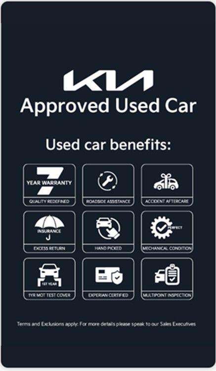 Kia Approved - This car comes with 7 years warranty from the day you drive away and comes with 2 years Kia assist breakdown coverColour - Infra RedInterior Trim and Colour - Black x 2 keys MOT Expiry 04/03/2028Service History - Full KiaWarranty period 7 Year/100,000 mile warranty!*********************************************************************************************Features we love about this car! - Touchscreen Navigation Reversing Camera System - Easy park Free 7-Year Kia Connect Services*********************************************************************************************Kia Approved Programme:Comprehensive Vehicle Inspection - Kia Approved vehicles undergo a multi-point inspection process (100+ checks), covering mechanical, electrical, and safety components. This ensures the car meets Kias and TMSs quality and performance standards.Manufacturer backed warranty Kia approved cars benefit from a 7 year/100,000 mile warranty from the day you pick the car up much like buying a brand-new vehicle24 Months Roadside Assistance Kia Assured vehicles benefit from 24 months roadside assistance coverMOT Test Cover Peace of mind for when your first MOT comes aroundVehicle history check Each car comes with a full history and background check confirming it is free from outstanding finance, theft and accident damage (write-offs)Approved dealership support Approved vehicles are only sold through authorised Kia dealers like ourselves ensuring you have professional aftersales support, that genuine Kia parts are used and you benefit from a team with Kia expertise********************************************************************************************* - 01509216100 - Submit an enquiry if youd prefer to discuss over email - Personalised walk around videos available on request - No matter how you wish to discuss this vehicle, we are on hand to help! Get in touch with one of our knowledgeable team members to discuss how you could purchase this car today!