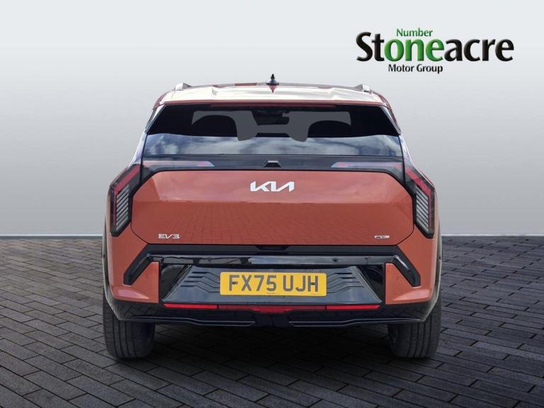 This stunning 2025 (75) Kia EV3 81.4kWh GT-Line S is a fantastic opportunity to own one of Kia’s latest all-electric SUVs. Finished in a striking orange and having covered just 1,387 miles, this vehicle has had 1 owner from new and is presented in excellent condition.Powered by a large 81.4kWh battery and electric motor producing 201 bhp, the EV3 delivers smooth, quiet performance along with impressive range, making it ideal for both daily commuting and longer journeys. The automatic transmission provides effortless driving, while the fully electric powertrain offers zero tailpipe emissions and lower running costs compared to traditional petrol or diesel vehicles.The GT-Line S specification sits at the top of the range and offers a high level of equipment, combining sporty styling with premium comfort and advanced technology. The EV3 stands out with its modern SUV design and bold road presence, while inside you’ll find a spacious, high-tech cabin designed with comfort and practicality in mind.Passengers benefit from generous interior space and a versatile boot area, making the EV3 a great choice for families or anyone looking for a practical and stylish electric SUV. The advanced technology and driver assistance features also help make every journey safer and more enjoyable.With very low mileage, top specification, and the latest electric technology from Kia, this EV3 represents an excellent opportunity to secure a nearly new electric SUV without the wait of ordering new.Available now from Stoneacre Motor Group, offering competitive finance options, part exchange welcome, and a professional service from enquiry through to handover.Contact us today to arrange a viewing or test drive.