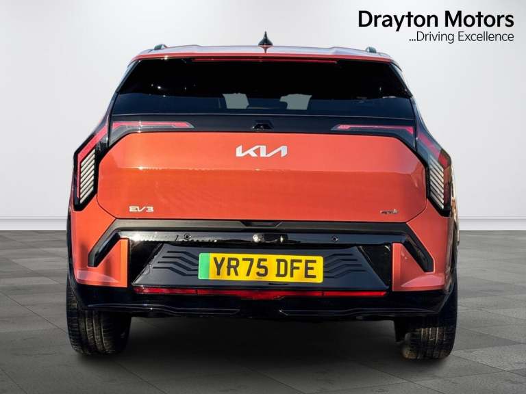 Having arrived in to stock with us from one of our ex demo, we are proud to offer for sale this fantastic low mileage EV3 GT-LINE 81.4KWh Electric Auto finished in amazing Sunset Orange!Having been used exclusively by our team members throughout its short life to date, this stunning EV3 has covered a lovely low mileage, comes to you with a great saving versus new list price and was only registered in July this year too! Benefiting from an array of standard spec which includes up to 375 miles range, 12.3" Touchscreen Sat Nav, Reversing Camera, Heated Front Seats and much more besides, you will be sure to truly love each and every journey you take in it! A multi point vehicle health check will be completed on the EV3 for you whilst it is in preparation with us for your peace of mind too, you can also opt to take out a range of service plan options to save on future servicing needs as well - just ask us for more details! Ask about our exclusive home charging point offer available from just 799. With Kia Warranty through to March 2032 and the balance of the 8yr battery warranty as well, give us a call today to discuss how we can help you explore the possibility of purchasing it either in person or over the phone with a range of collection and delivery options as well!