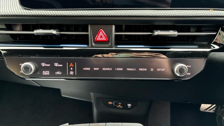 ..12.3'' Curved Driver Display Screen, 12.3'' Curved Touchscreen Navigation, 12V Front and Luggage Compartment Power Socket, 19'' Alloy Wheels, 3-spoke GT-Line Artificial Leather Steering Wheel, 6-Speaker Audio System, 60:40 Split Remote Folding Rear Seats, All-Round 3-Point Seatbelts, All-Round Height Adjustable Headrests, Alloy Pedals, Anti-Lock Braking System with Emergency Stop Signalling, Auto-Dimming Rear View Mirror, Automatic Air Conditioning, Automatic Defog System, Automatic Headlight Control, Automatic headlights, Black Artificial Leather Seats with White Artificial Leather Bolsters, Blind-Spot Collision-Avoidance Assist, Bluetooth Connection, Body Coloured Exterior Flush Door Handles, Centre Console with Storage Box, Curtain Airbags, Customisable Ambient Lighting, Customisable Automatic Door Locking, Customisable Automatic Door Unlocking, Drive Mode Select (Normal Eco Sport and MyDrive), Driver Attention Warning, Dual LED Headlights With Adaptive Driving Beam, Dual motor with 320bhp, Dynamic Brake Control, Electric Driver's Seat Adjustment with Memory Function, Electric Driver's Seat Lumbar Support, Electric Front Passenger's Seat Adjustment, Electric Front Passenger's Seat Lumbar Support, Electric One-touch Front Windows, Electrically Adjustable Folding and Heated Door Mirrors with LED Indicators, Electronic Parking Brake with Autohold Function, Electronic Stability Control, Forward Collision-Avoidance Assist 1.5 - City Pedestrian Cyclist and Junction Turning, Free 7-Year Kia Connect Services, Front Airbags, Front Heated Seats, Front Passenger Airbag Cut-Off Switch, Front Relaxation Seats, Front USB-C Charging Ports x2, Front and Rear Door Storage, Front and Rear Parking Sensors, Frunk, Frunk LED Lights, GT-Line Exterior Styling, GT-Line Interior Styling, Gloss Black Door Mirrors, Glovebox with Illumination, Heated Rear Window, Heated Steering Wheel, Heated front seats, Height Adjustable Front Seatbelts, High Gloss Black Beltline, High Gloss Black Door Garnish With Body Colour Wheel Arches, Highway Driving Assist 1.0, Hill-Start Assist Control, ISOFIX Child Seat Top Tethers and Anchor Fixings (Rear Row), Intelligent Speed Limit Assist, LED Daytime Running Lights, LED Front Cabin and Rear Lights, LED Luggage Compartment Lights, LED Rear Fog Lights, LED Rear Lights, Lane Follow Assist 2.0 with Hands-On Detection, Lane Keep Assist, Locking Wheel Nuts, Luggage Area Load Cover, Luggage Board, Luggage Net Hooks, Manual Child Lock, Manual Steering