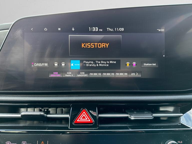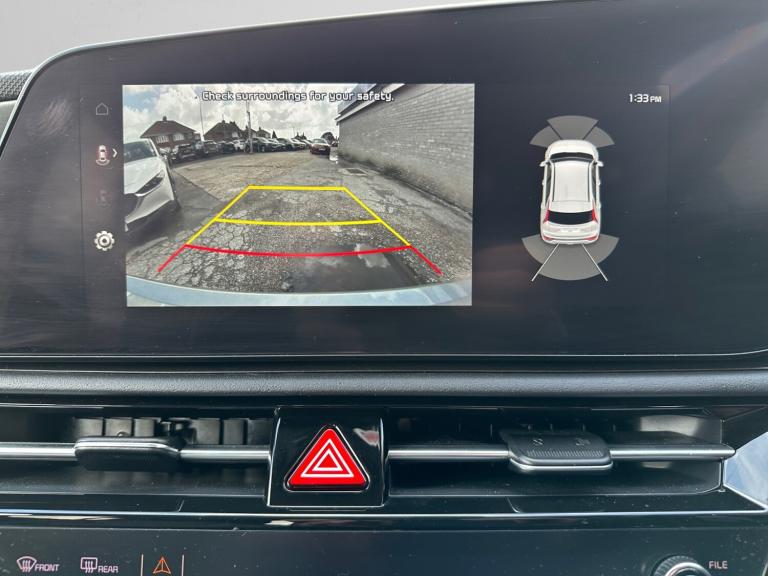 ..10.25'' driver display screen, 10.25'' touchscreen satellite navigation, Apple car play/Android Auto with voice control, Blind spot collision avoidance assist, Customisable Head Up Display, Drive mode select (Eco, normal, sport, snow), E-call, Emergency stop signalling system, Forward Collision-Avoidance Assist (FCA) 1.5 - City/Pedestrian/Cyclist/Junction turning, Front parking sensors, Highway Driving Assist (HDA), Intelligent speed limit assist, Kia Connect (UVO), Lane Following Assist (LFA), Lane keep assist, Motor driven power steering, Parking collision avoidance assist (PCA), Rear cross traffic collision avoidance assist (RCCA), Rear parking sensors, Remote smart parking assist, Reversing camera system, Safe exit warning (SEW), Smart cruise control with stop and go functionality, Smart power tailgate, Trip computer with distance/fuel consumption/average speed, Wireless Smartphone charger, 220v AC Inverter, 'Shark fin' mobile antenna, 6 speakers, Bluetooth with music streaming, DAB Digital radio, Steering wheel mounted controls, USB port for connection of a media device, Acoustic windshield, All round electric windows with drivers and front passenger auto up/down and safety function, Auto dimming rear view mirror, Automatic defog system, Automatic headlight control system, Black grille with chrome surround, Black window surrounds, Body colour bumpers, Body colour door mirrors, Body colour exterior door handles, Deluxe door scuff plates, Electrically adjustable and heated door mirrors with LED turn indicator, Electrically folding door mirrors, Front and rear chrome skid plates, Front fog lights, Gloss black wheel arches, Heated rear window, LED daytime running lights, LED Headlights, LED High mounted brake light, LED rear combination lights, Privacy glass - Rear windows and tailgate, Rain sensing front wipers, Rear fog lights, Rear roof spoiler, Rear side wing doors, Rear wiper, Roof rails, Solar glass windscreen, Sunroof with tilting and sliding function, Welcome and follow-me home light functionality, Windscreen Washer Level Warning, 12v socket in front, 12V socket in luggage compartment, 3 seat bench in 2nd row, 60:40 split remote folding rear seats, All-round height adjustable headrests, Alloy pedals, Artificial leather centre console storage box, Artificial leather steering wheel, Artificial leather upholstery, Automatic air conditioning, Centre console cupholder, Chrome coating interior door handles, Driver power adjusted memory seat,
