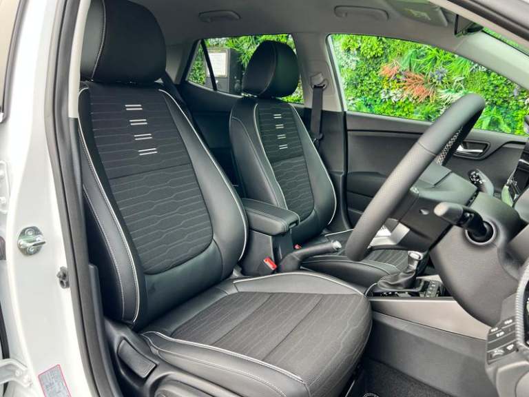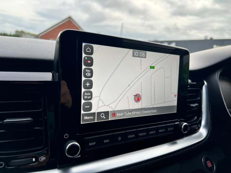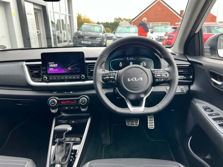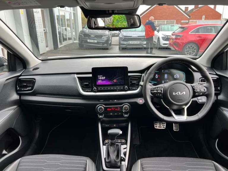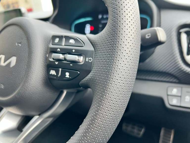 17 GT-Line alloy wheels, 8 Touchscreen navigation featuring Free 7-year Kia Connect services, Intelligent speed limit warning (ISLW), Heated front seats and steering wheel, Smart cruise control (DCT only), Smart key with engine start/stop, LED rear combination lamps, Front parking sensors, Blind spot collision warning, GT-Line black cloth and faux leather upholstery, Rain sensing front wipers, Blind spot collision avoidance (DCT only), Passenger seat height adjust, Auto-dimming rear-view mirror, Luggage net, Black electric folding door mirrors, Privacy glass (rear windows & tailgate), LED Bi-function projection headlights (Multi MFR), LED front fog lights, Alloy pedals, Reversing camera, Automatic air conditioning, GT-Line body-kit, Gloss black door mirrors with matt black lower housing, Black rear spoiler with high-mounted brake light, Chrome side window trim, D-cut perforated leather trimmed steering wheel, Black high gloss centre fascia, Free 7-year Kia Connect services, Apple CarPlay & Android Auto via connectivity, Forward collision-avoidance assist (FCA) (city/pedestrian/cyclist), Roof rails, Rear parking sensors, LED daytime running lights, Bi-function projection headlights with static bending, Cruise control & speed limiter, High gloss black & satin radiator grille, Electrically adjustable heated and folding door mirrors with LED indicator lights, Black and body coloured bumpers, Black side sills door garnish and wheel arch trims, Front & rear silver skid plates, Front