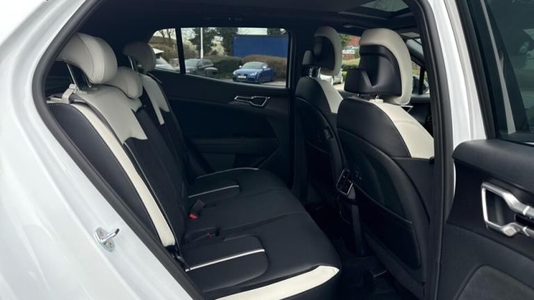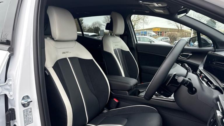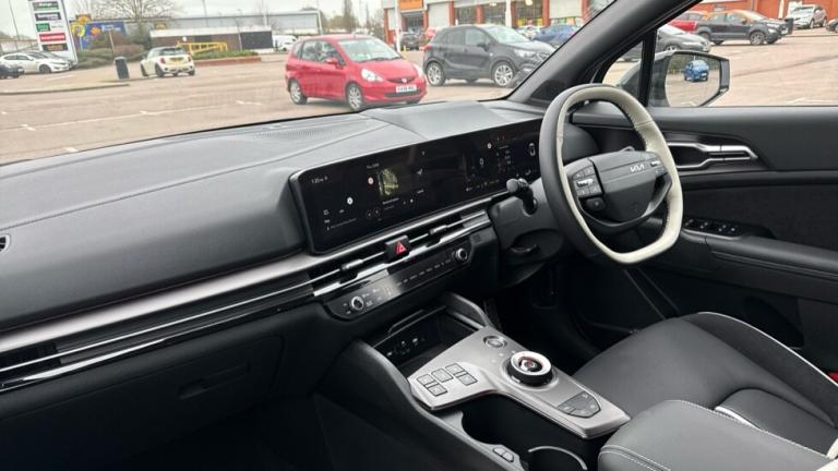 ..12.3'' Driver display screen, 12.3'' Touchscreen navigation system, 360 degree around view monitor, Blind spot collision avoidance assist, Blind spot view monitor, Bluetooth connection, Customisable head-up display, Digital key 2.0, Drive mode selector, Driver attention warning, E-call, Emergency stop signalling system, Forward collision avoidance assist 2.0, Front and rear parking sensors, Highway Driving Assist (HDA 2.0), Intelligent speed limit assist, Kia Connect (UVO), Lane Following Assist (LFA), Lane keep assist, Low washer fluid warning, Motor driven power steering, Over the air (OTA) functionality, Parking collision avoidance assist (PCA), Rear cross traffic collision avoidance assist (RCCA), Remote smart parking assist, Reversing camera, Safe exit warning (SEW), Smart cruise control with stop and go functionality, Smart power tailgate, Speed limiter, Trip computer, Windscreen washer level indicator, Wireless apple car play/android Auto, Wireless Smartphone charger, DAB Radio with MP3, Front passenger 1x USB-C port, Harman Kardon premium sound system with 8 speakers, Rear passenger 2x USB-C port, Steering wheel mounted audio controls, USB-C port for connection of a media device, Auto dimming rear view mirror, Automatic defog system, Automatic headlight control system, Black and body coloured bumpers, Black window surrounds, Body colour exterior door handles, Body colour radiator upper garnish and door garnish, Dual LED headlights with adaptive driving beam, Electric front and rear windows with front one touch function, Electrically adjustable/heated/folding door mirrors with LED indicators, Front and rear body colour skid plates, Gloss black door mirrors, Gloss black radiator grille, Gloss black wheel arches, Glossy black roof rails, GT-Line exterior styling, Heated rear window, High beam assist, LED daytime running lights, LED front fog lamps, LED High mounted stop light, LED rear lights, Panoramic sunroof with tilting and sliding function with electric blind, Privacy glass in rear windows and tailgate, Rain sensing wipers, Rear fog lamp, Rear roof spoiler, Rear side wing doors, Rear wiper, Satin finished beltline, Trailer stability assist, 12V power socket in front and luggage compartment, 3 seat bench in 2nd row, 3 x passenger assist grips, 40/20/40 split folding rear seat, All-round height adjustable headrests, Alloy pedals, Automatic air conditioning, Black headlining, Centre console storage box, Cupholders in rear armrest, Customisable