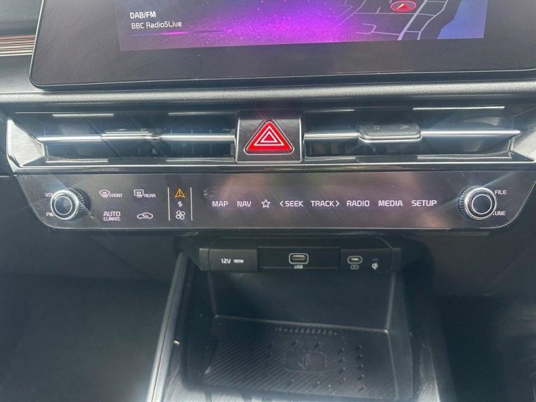 This 2022 Kia Niro 3 is a fantastic example, having had only one owner since new. This electric vehicle boasts a substantial 68 kWh battery, offering an impressive maximum range of 285 miles when new, perfect for both daily commutes and longer journeys. Convenience is key with features like a reversing camera with dynamic guidelines integrated into the centre fascia screen, a heated steering wheel for those chilly mornings, and automatic headlight control. You'll also appreciate the ease of Bluetooth with music streaming, and the smart entry system complete with an engine start stop button and keyless entry.