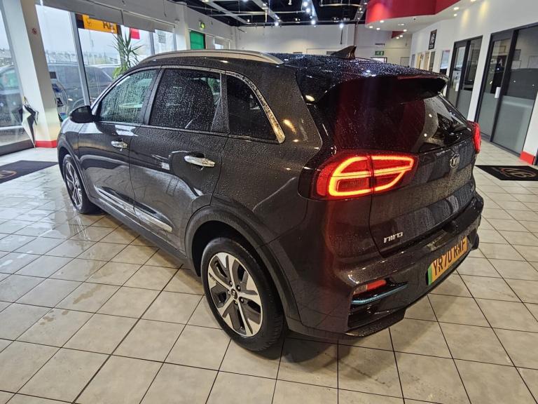 The 2021 Kia Niro 64kWh 4+ is a fully electric crossover finished in stylish grey, with 94,491 miles and 3 previous owners. Powered by a 64kWh battery, it delivers strong performance with instant torque and a smooth automatic transmission, offering impressive electric range and low running costs. The top-spec 4+ trim comes exceptionally well equipped, featuring a 10.25-inch touchscreen infotainment system with satellite navigation, Apple CarPlay and Android Auto, Bluetooth connectivity, DAB radio, and JBL premium sound system. Comfort highlights include heated and ventilated front seats, heated rear seats, heated steering wheel, electric driver's seat adjustment, wireless phone charging, and keyless entry with push-button start. Advanced safety and driver assistance systems include adaptive cruise control, lane keep assist, blind spot monitoring, rear cross-traffic alert, front and rear parking sensors, reversing camera, and smart regenerative braking control. The Niro also offers a spacious cabin, generous boot capacity, and split-folding rear seats for added practicality. Combining long electric range, premium features, and everyday usability, this Kia Niro EV 4+ is an excellent choice for drivers seeking efficient, comfortable, and eco-friendly motoring.