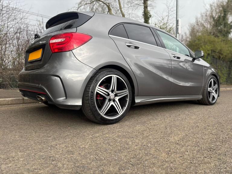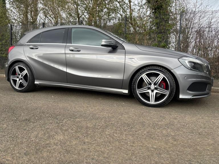 Stunning 2015 Mercedes-Benz A250 AMG Sport finished in Mountain Grey metallic, offering the perfect blend of performance, style, and practicality. This well-maintained example comes with just 46,000 miles and is equipped with the smooth and responsive 7G-DCT automatic gearbox and 4MATIC all-wheel drive system.