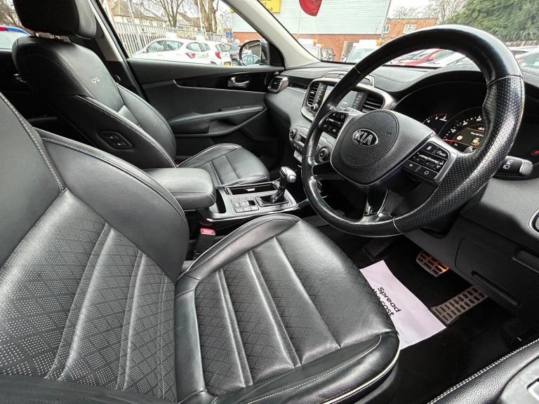 HERE AT JOHNNY AUTOS WE ARE DELIGHTED TO PRESENT THIS STUNNING KIA SORENTO GT-LINE 2.2 DIESEL AUTOMATIC 5 DOOR IN AURORA BLACK PEARL WITH BLACK LEATHER INTERIOR. FACTORY OPTIONS INCLUDE SATELLITE NAVIGATION, FRONT AND REAR PARKING SENSORS WITH REAR CAMERA, HEATED STEERING WHEEL, FRONT AND REAR HEATED SEATS, ELECTRIC SEATS, DUAL CLIMATE CONTROL WITH 3RD ROW AIR CONDITIONING, BLUETOOTH, DAB RADIO, 8"" COLOUR SCREEN MEDIA SYSTEM WITH 6 SPEAKERS, ANDROIDAPPLE CAR PLAY, AUXUSB CONNECTIVITY, PADDLE SHIFT, CRUISE CONTROL WITH SPEED LIMITER, LEATHER TRIMMED MULTIFUNCTION STEERING WHEEL, 19"" ALLOY WHEELS, KEYLESS GO, KEYLESS ENTRY, LANE KEEP ASSIST, DIFF LOCK, SEAT WALK IN SYSTEM, PRIVACY GLASS, ELECTRIC FOLDING MIRRORS, ELECTRIC WINDOWS, AUTOMATIC LIGHTS, AUTOMATIC WIPERS, ICE CUBE FRONT FOG LIGHTS, DRIVE MODE SYSYEM WITH 4 SETTINGS, AUTO HOLD, HILL START ASSIST, GT-LINE EXTERIOR AND INTERIOR STYLING PACK, LED LIGHTS, ISOFIX AND REMOTE CENTRAL LOCKING WITH 2 KEYS. AS AN RAC DEALER WE ENSURE THAT THIS VEHICLE IS SUBJECT TO A FULL MULTI-POINT INSPECTION AND IS ACCOMPANIED BY 12 MONTHS RAC ROADSIDE ASSISTANCE ALONG WITH A COMPLIMENTARY RAC PLATINUM WARRANTY. 1 FORMER KEEPER + FULL KIA SERVICE HISTORY + 5 KIA SERVICES RECORDED + LAST SERVICE AT 89,575 MILES ON 17112025 + MOT UNTIL 09122026 + ULEZ COMPLIANT + EXTENDED WARRANTY OPTIONS AVAILABLE UP TO 36 MONTHS + PHOTO IDENTIFICATION REQUIRED FOR VIEWING AND TEST DRIVES + PART EXCHANGE WELCOME + NATIONWIDE DELIVERY AVAILABLE AT COST + TO ENSURE THE HIGHEST QUALITY OF CUSTOMER SERVICE VIEWING IS BY APPOINTMENT ONLY + CALL US ON 0116 507 4142 OR WHATSAPP [Phone number removed] FOR ANY QUERIES OR INFORMATION + ONLY CASHBANK TRANSFERS ACCEPTED + OPEN 7 DAYS A WEEK + VISIT OUR WEBSITE FOR OUR FULL STOCKLIST: https:[Website URL removed]